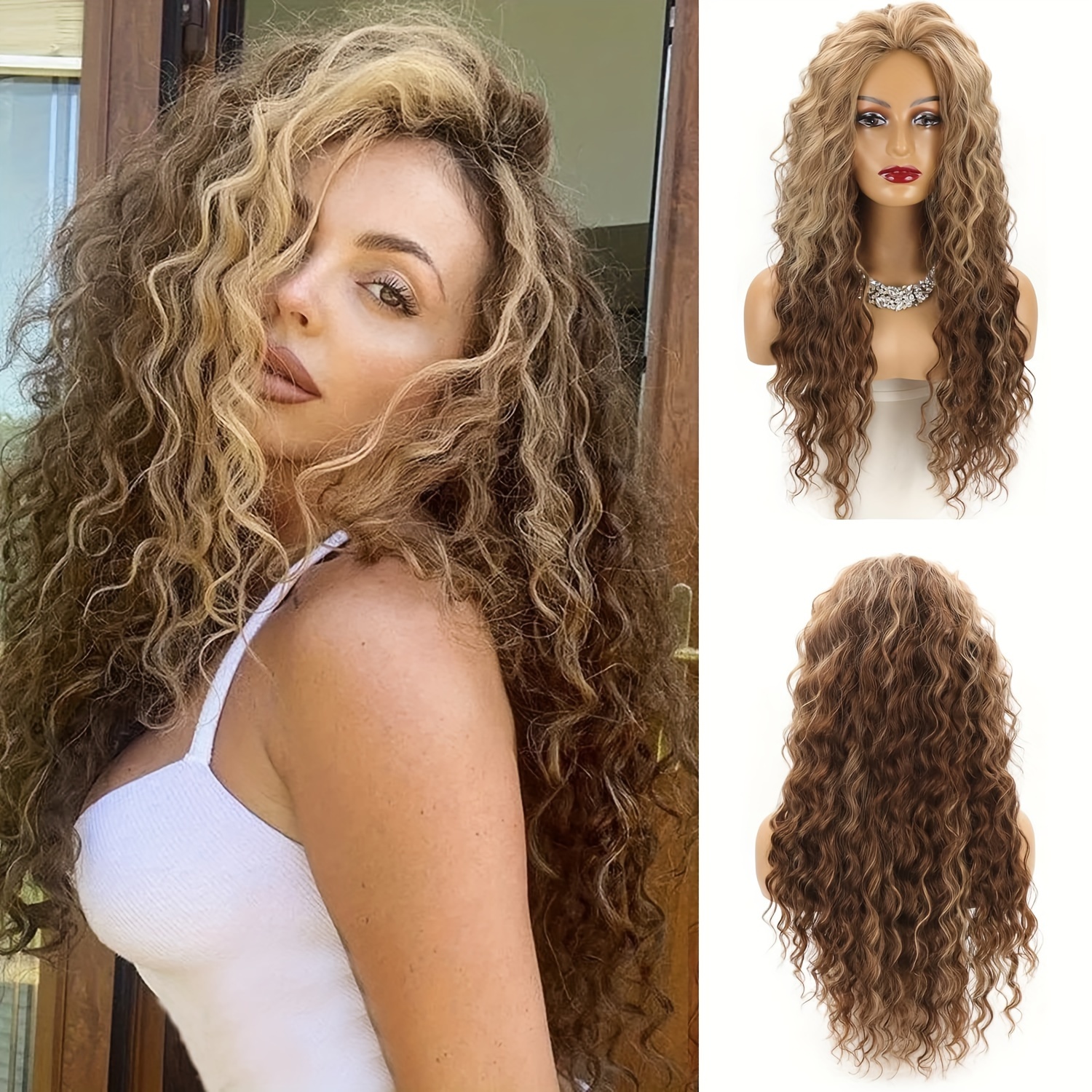 TEMU Ombre Ash Blonde Brown Curly Wig Long Wavy Mi...