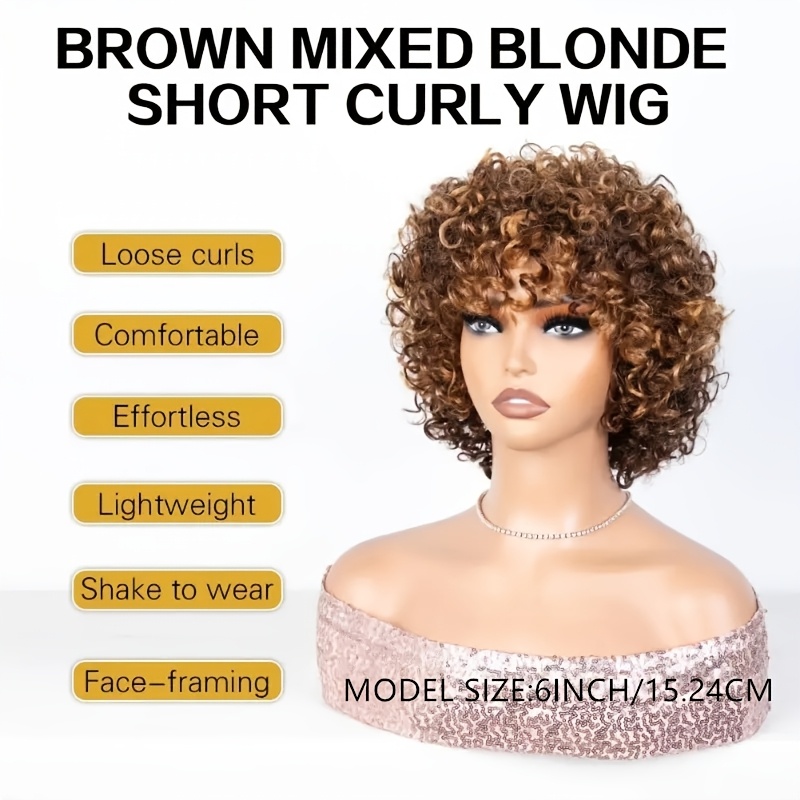 TEMU Elegant Short Curly Wig For Women - High-temp...