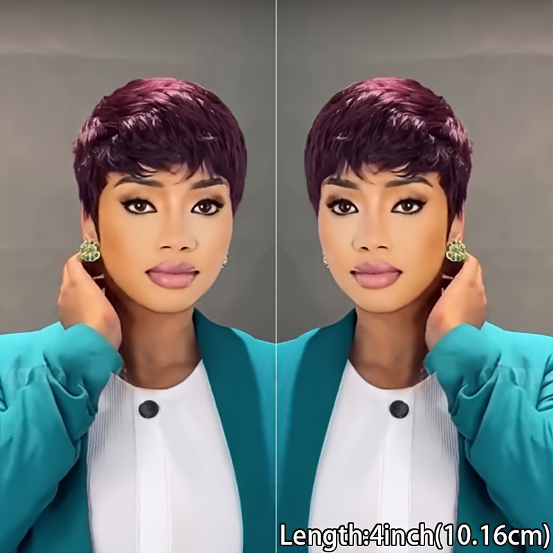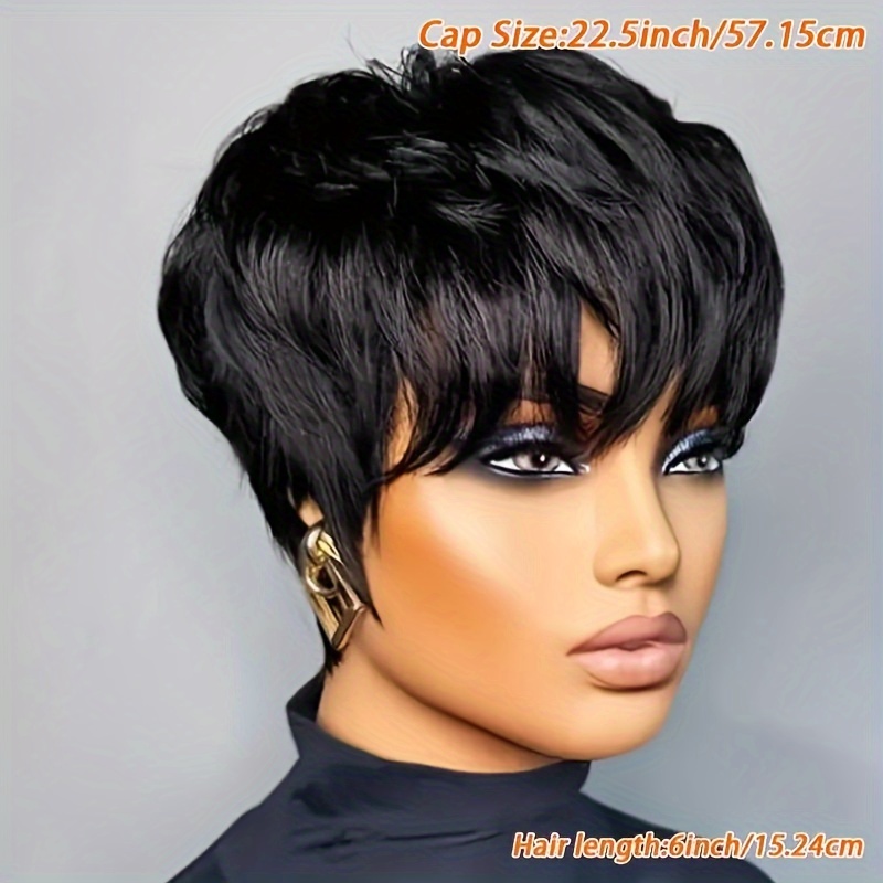 TEMU 99j Cut Human Hair Wig - 4 Inch Short Straigh...