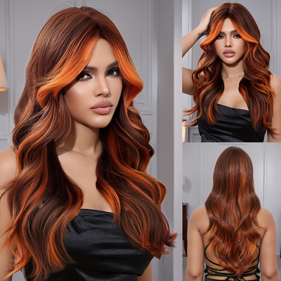 TEMU Vibrant Copper, Flame Orange Highlight Wig Fo...