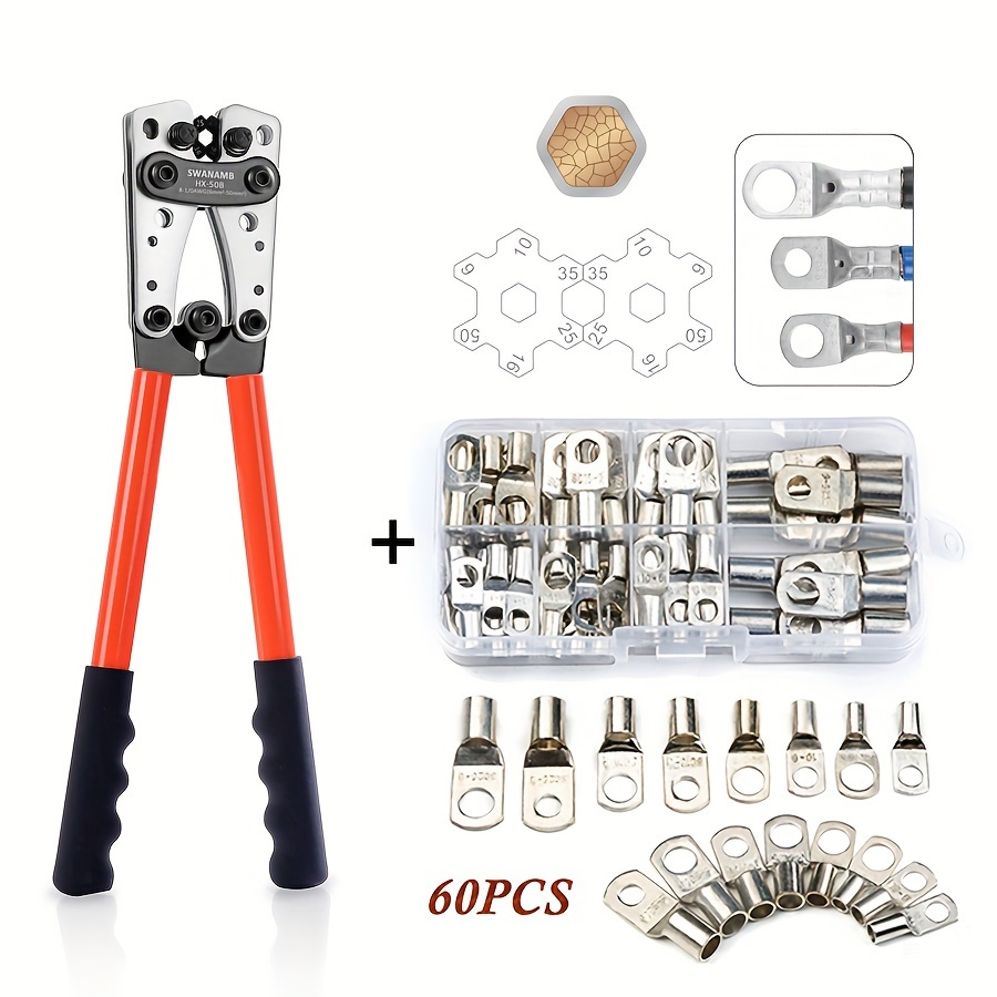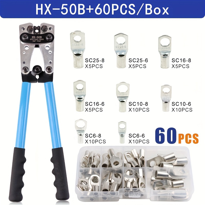TEMU 1 Set Hx-50b Copper Lug Crimping Tool Kit - 6...