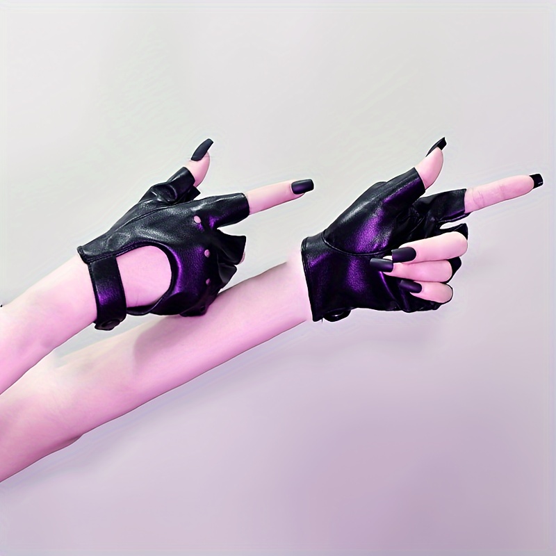 TEMU Pu Leather Punk Long Gloves Solid Color Gothi...