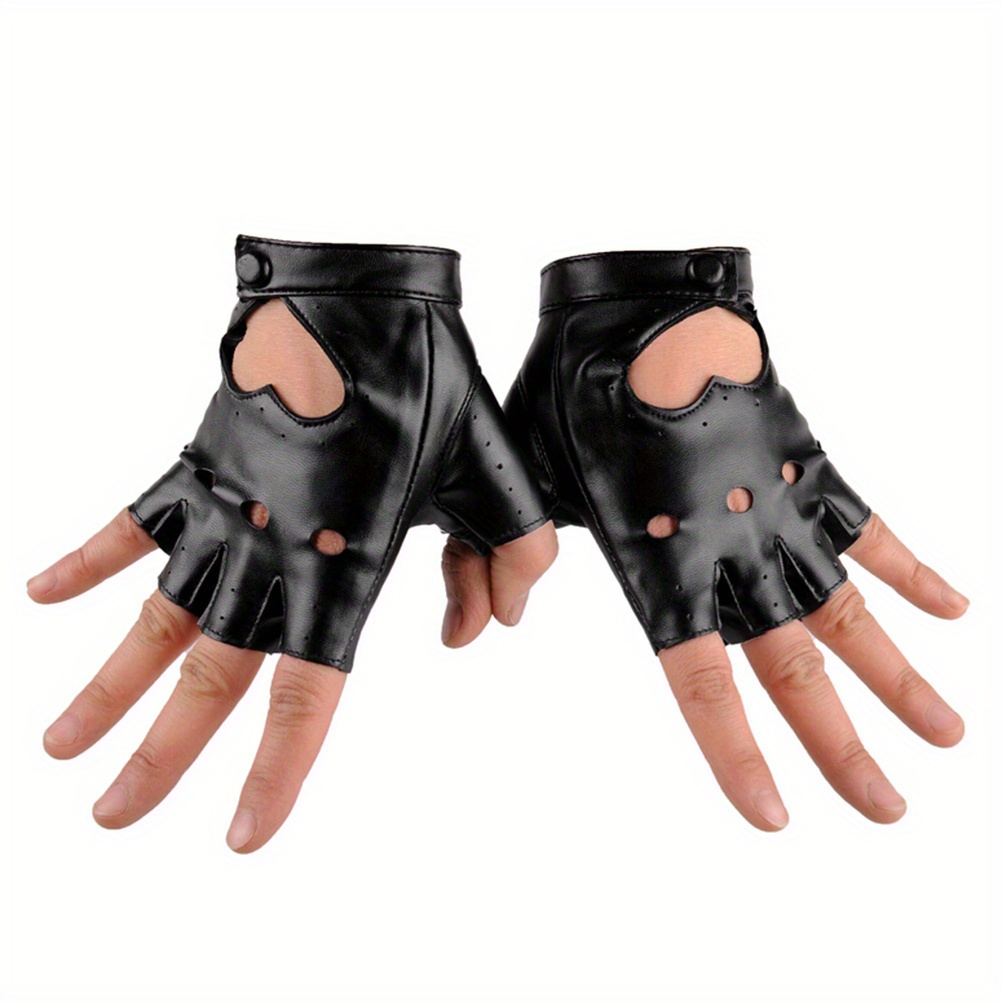 TEMU Women's Leather Half Finger Gloves, Heart Cut...