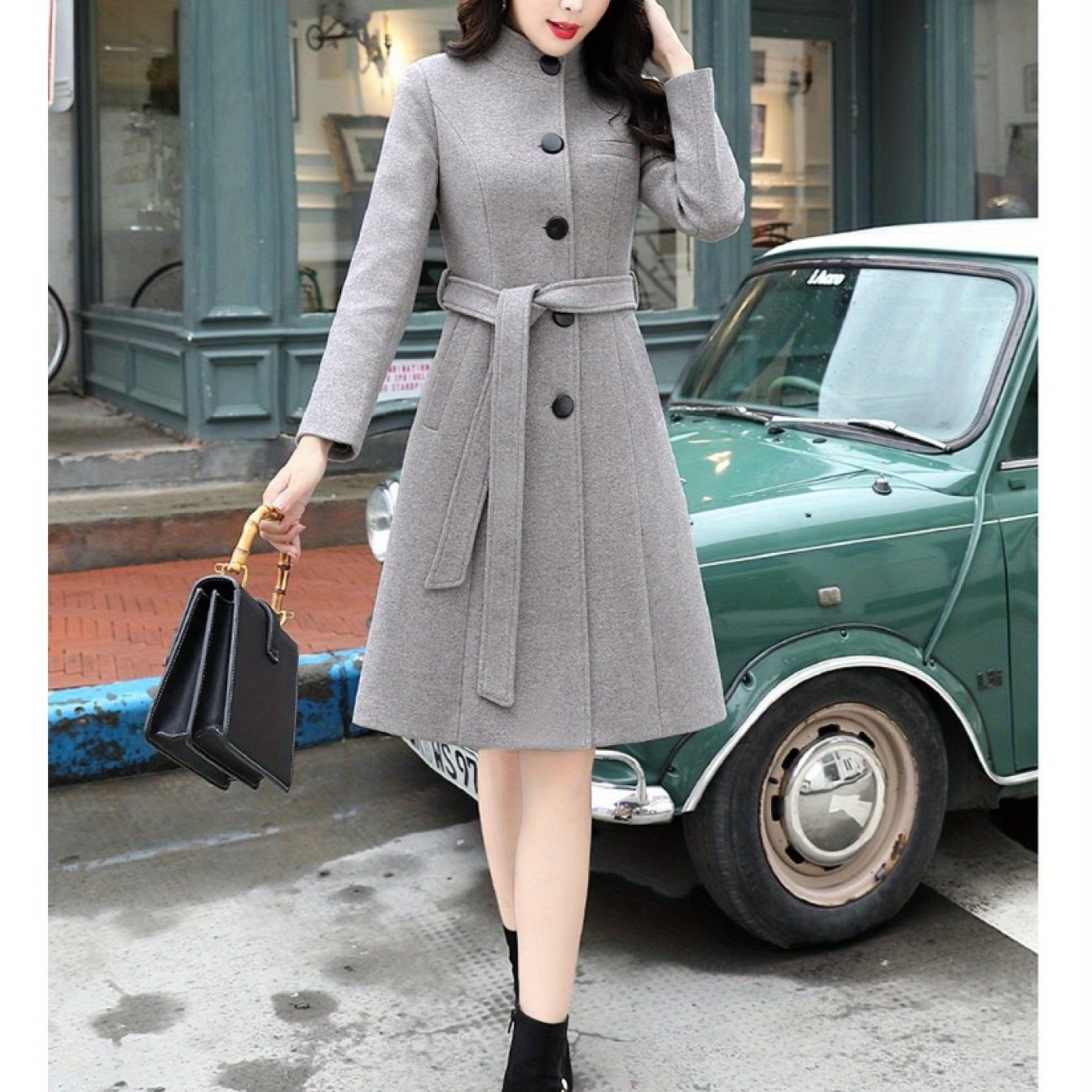 TEMU Women's Mid-length Tweed Coat - Solid Color B...