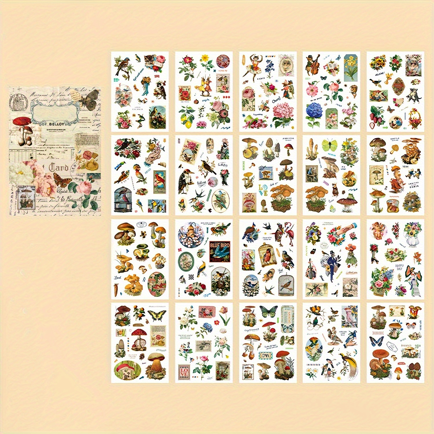 TEMU 20pcs Vintage Botanical Mushroom Sticker Book...