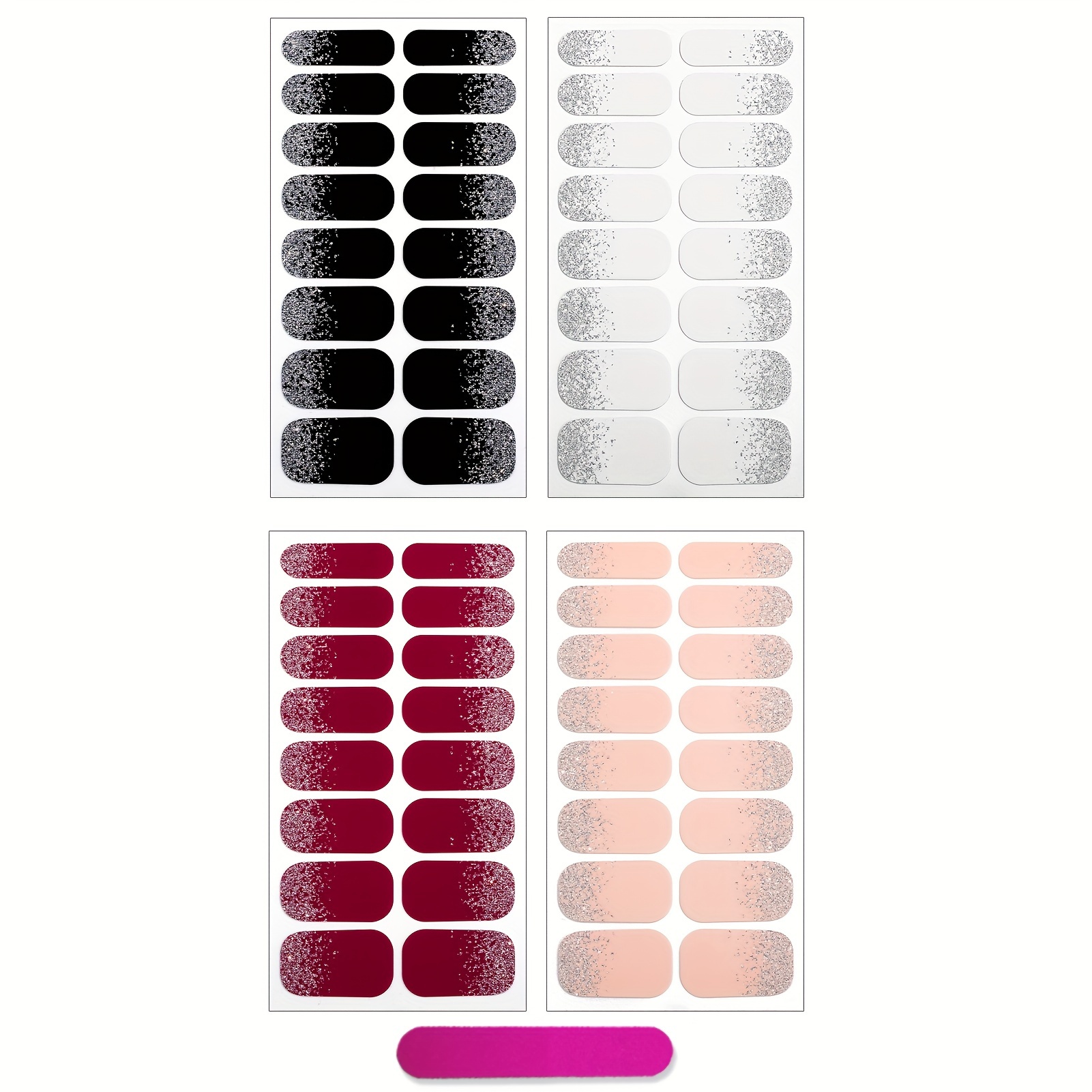 TEMU 10 Blätter Vollumfang Nagelsticker Nagellack-Streifen Gradienten-Sticker Glitzer Selbstklebende DIY-Kunst Dekor-Streifen 2 Nagelfeilen für Weihnachts-Nageldesign (Klassischer Stil)