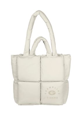 Elevate your style with Logo Brands' Puff Tote. Crafted to perfection, this tote seamlessly combines soft quilted detailing, and subtle team spirit with modern functionality. The neutral color allows you to show off your team spirit in an understated way, while the plush puff exterior offers a touch of comfort. Tailored for everyday use, the spacious interior easily accommodates your essentials. Stay organized on the move with two interior pockets and a zipper pocket. The versatile handles offer multiple carrying options drape it over your shoulder or carry it by hand. The magnet button closure helps to keep your belongings secure. Whether you're off to the office or a weekend adventure, the Puff Tote is the perfect blend of fashion-forward design and practicality, making it an ideal companion for any occasion. | Logo Brands NCAA Grambling State Tigers Puff Tote, Sand