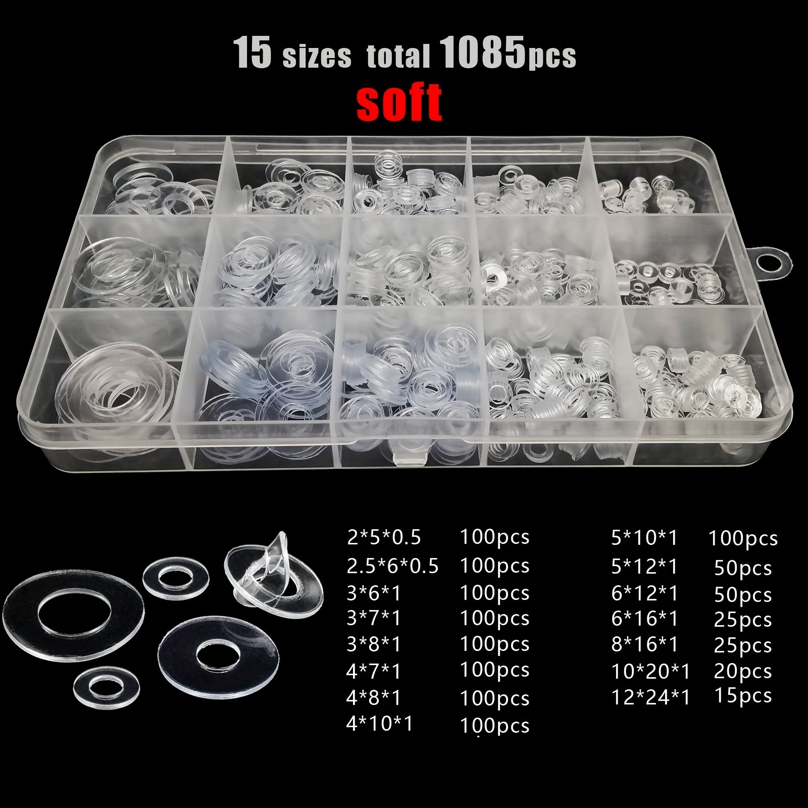10pcs White Silicone Round Flat Washer Assortment ...