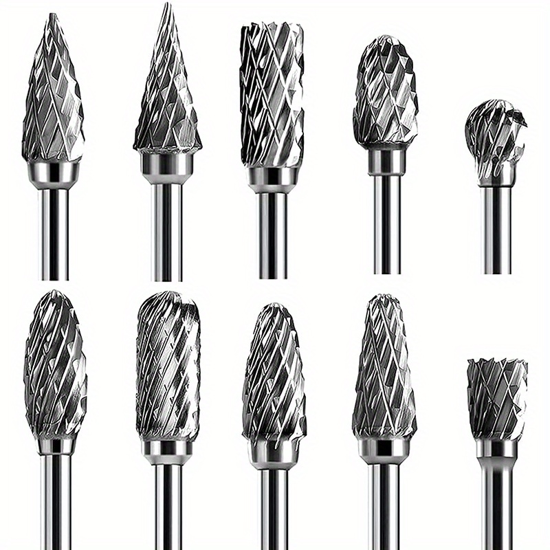 TEMU 10pcs Carbide Rotary Burr Set - , Shapes For Grinding & Deburring - Tool Accessories
