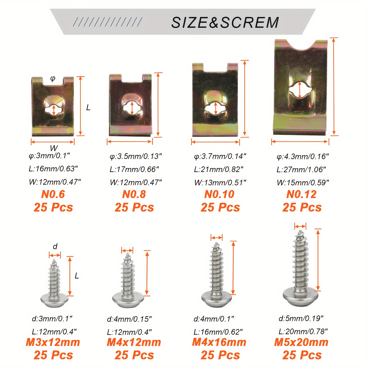 TEMU 1セット(190個)カーフィクスクリップキット-6サイズカートリムプレートプロモーションクリッププラスチックファスナーカーバパーフェンダーリベットキットトラックとオートバイ用