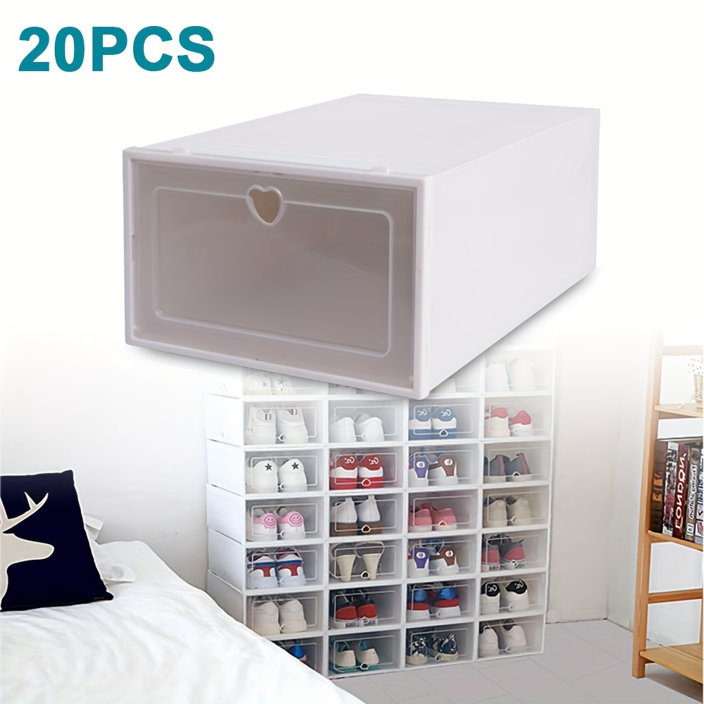 TEMU 12-piece Stackable Shoe Boxes, Plastic Shoe Organizers, Foldable And Stackable Shoe Storage Boxes For Sizes Up To 44