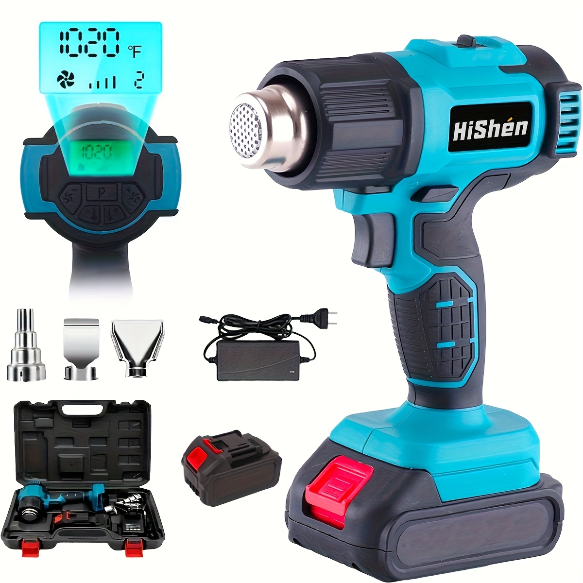 Product information for TEMU 1200 Watt Dual Temperature Setting Heat , 752°f-1112°f Heat Kit With 4 Nozzles, Fast Heating, Protection, For Crafts, Shrink Wrapping/casing, Paint Removal