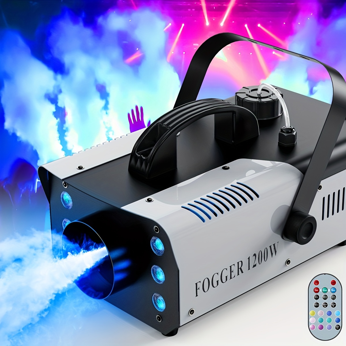 TEMU 1200w Fog Machine With Rgb 6leds Lighting Smoke Generator Stage Effect Equipment For Play Theater Halloween Party Dj Nightclub Wedding