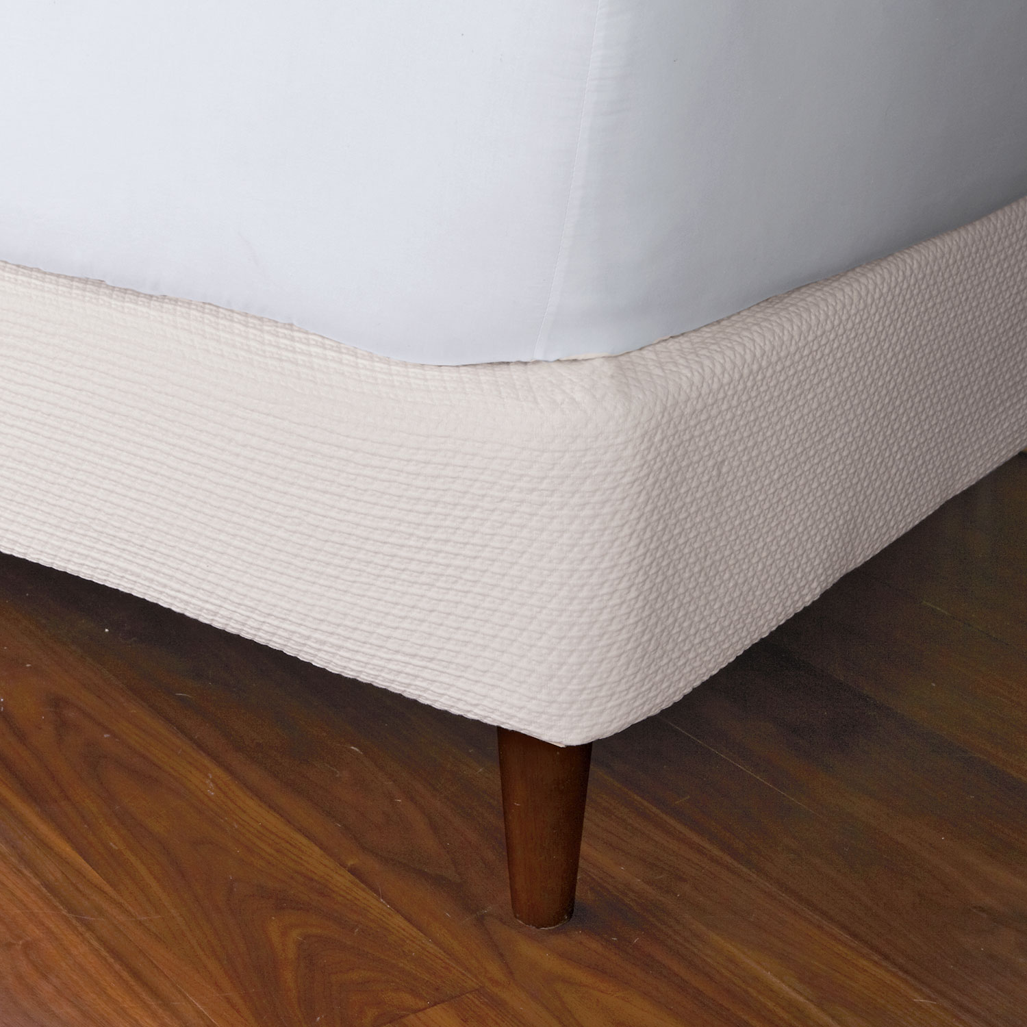 A beautiful decorative element with a very practical purpose, our sophisticated Madelyn Matelassé box spring cover helps to pull the whole room together in an instant. Patterned with elegant mini diamonds, this textured matelasséoutfits your bed from top to bottom for a well-appointed look. A crisp, tailored alternative to the traditional bed skirt, our Madelyn Matelassé box spring cover is a simple bedding element with a big impact. A perfect pick to conceal the storage space under your bed, the Madelyn Matelassé box spring cover helps create a more tidy space with minimal effort. Exclusively by The Company Store. Cotton box spring cover 100% Egyptian Cotton Crisply tailored and patterned in a textural mini-diamond matelassé Covers the sides of the box spring only 15 in. deep pocket Available in sizes Twin, Full, Queen, King, and California King Machine wash OEKO-TEX® STANDARD 100 certification keeps you and your family safe from harmful substances (Certification number 18. HUS. 52388, Hohenstein HTTI) Made in Portugal | Madelyn Egyptian Cotton Matelassé Box Spring Cover - White, Cal King, Size California King | The Company Store
