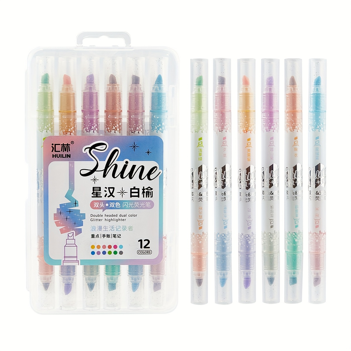 TEMU 12pcs Glitter Gel Pen Painting Hand Account Pen Student Creative Neutral Pen Diy Fluorescent Pen Set