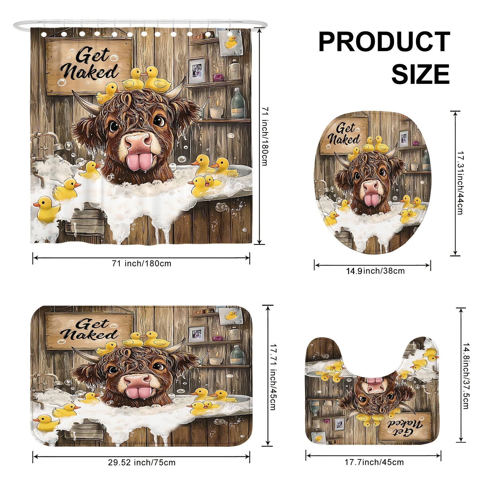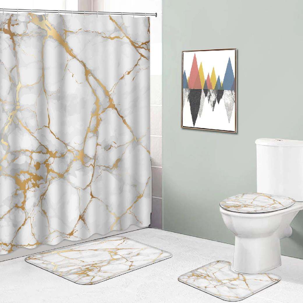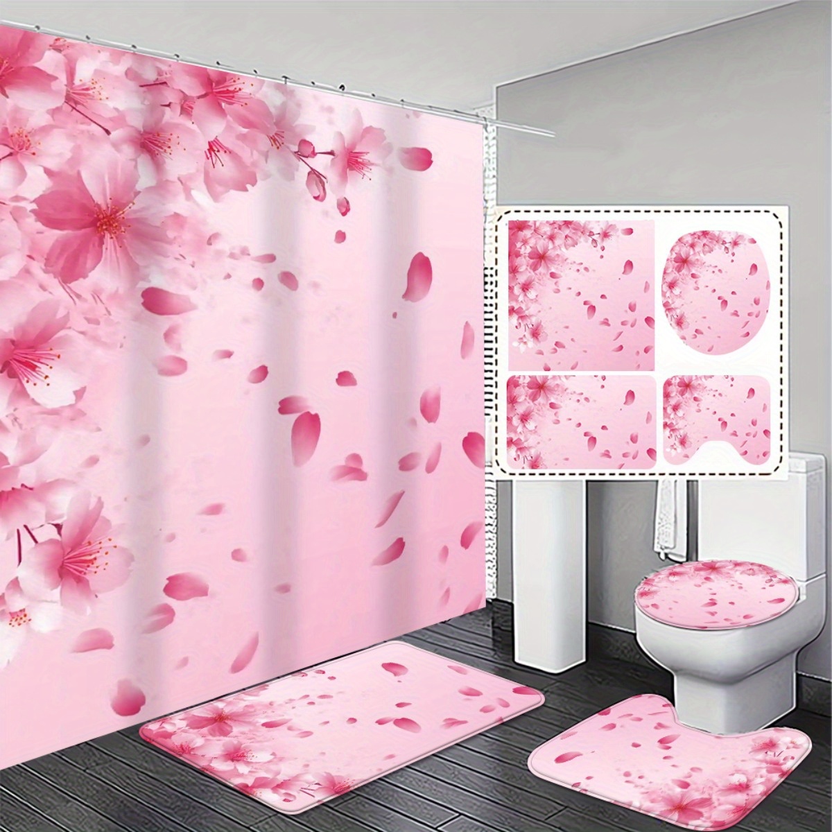 TEMU 1/4pcs Pink Bathroom Set, Includes 2d Flat Print Shower Curtain, Non-slip Bath Mat, Toilet Lid Cover, Bath Mat, And 12 Plastic Hooks, Bathroom Accessories, Home Decor, 2d Flat