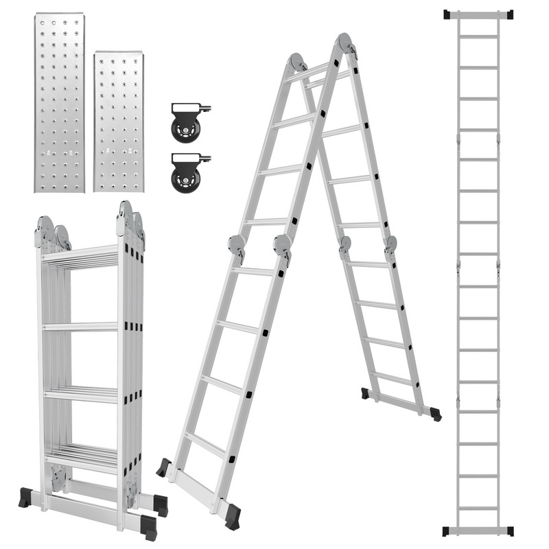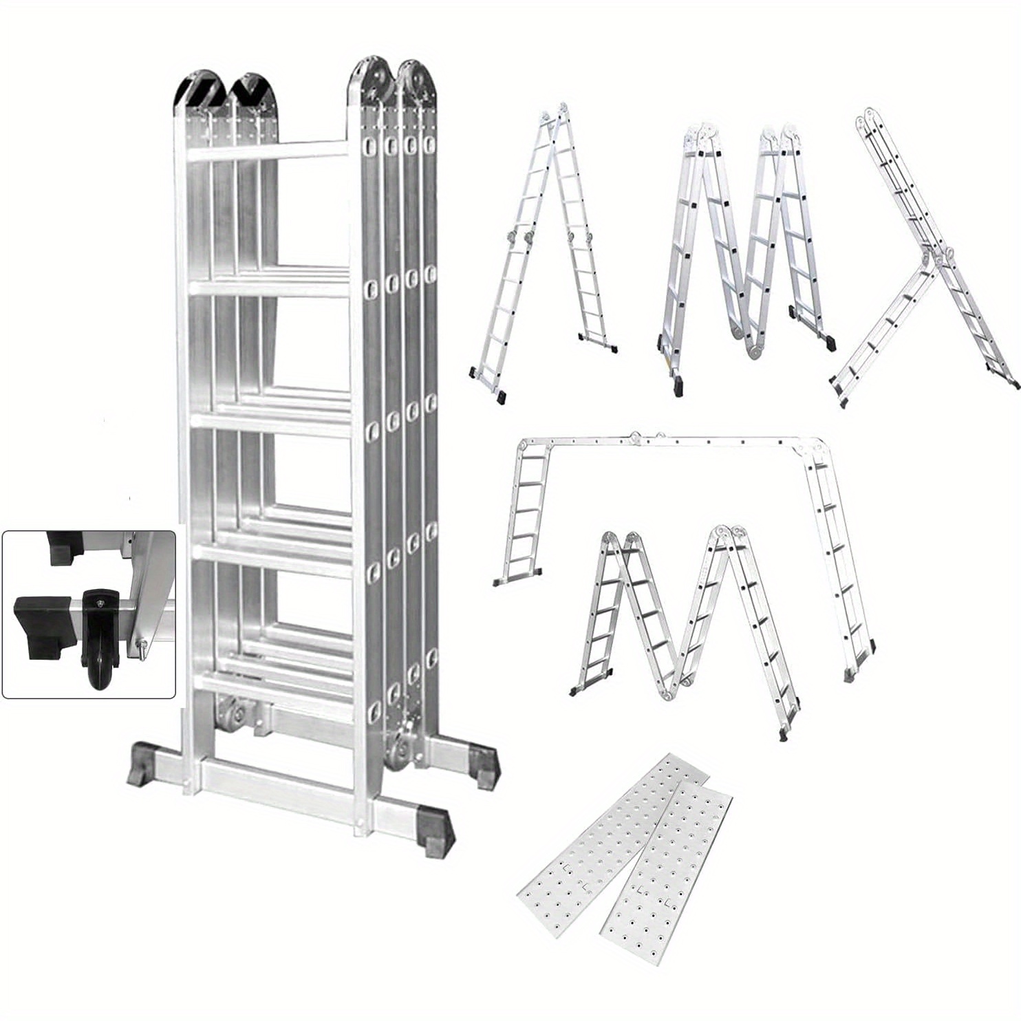 TEMU 16.4ft Heavy-duty Aluminum Telescopic Step Ladder With Detachable Hooks - Adjustable, Foldable Design For Safe & , Indoor/outdoor, Supports Up To 330lbs, With Non-slip Rubber Feet