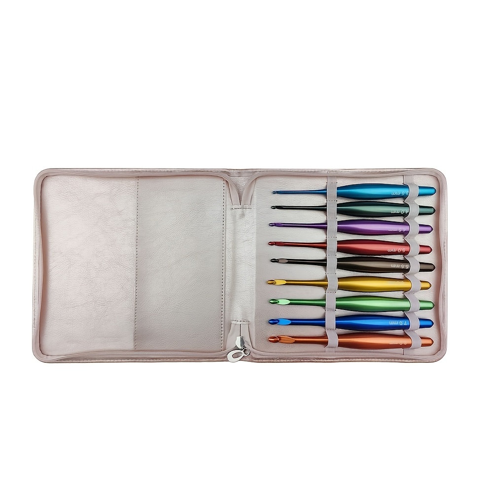 TEMU 16pcs Floral Print Single-pointed Crochet Hooks Set With Abs Plastic Handles - Includes Storage Pouch, Ideal For Knitting And Diy Crafts, Craft Supplies||durable Handles