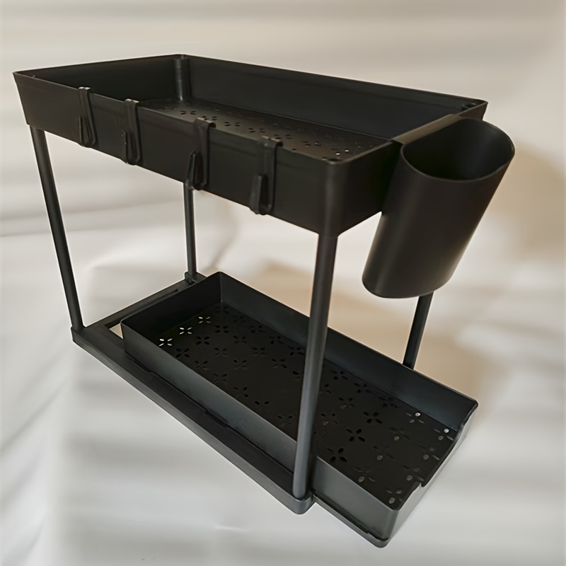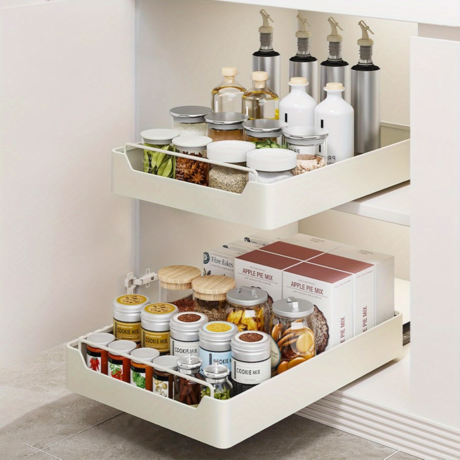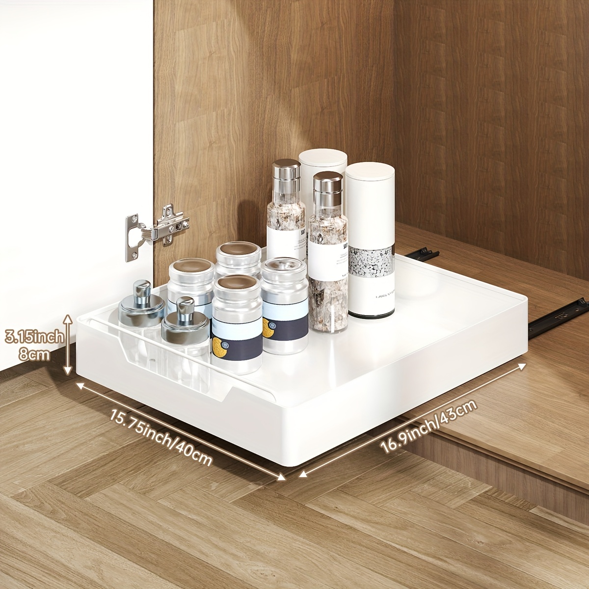 TEMU 1pc Adjustable Expandable Cabinet Shelf Organizer, Pp Material, No-electricity Kitchen Pantry Rack, Summer Holiday Countertop Storage Solution
