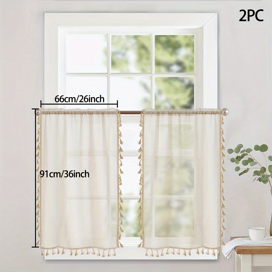 TEMU 1pc, Beige -like Fabric Small Curtain With Japanese Country Style Tassel Lace Trim For Kitchen Partition, Suitable For Window Cabinet And Door Decoration (cord Not Included)