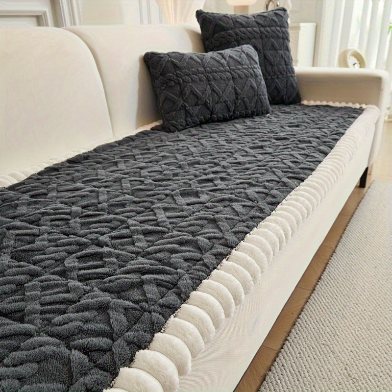 TEMU 1pc Boho Chenille Sofa Cover, Geometric Pattern, Non-slip Composite Bottom, Easy Clean, Pet-friendly, Universal , Sofa Protector For Single, Double, Triple, And Sectional Sofas