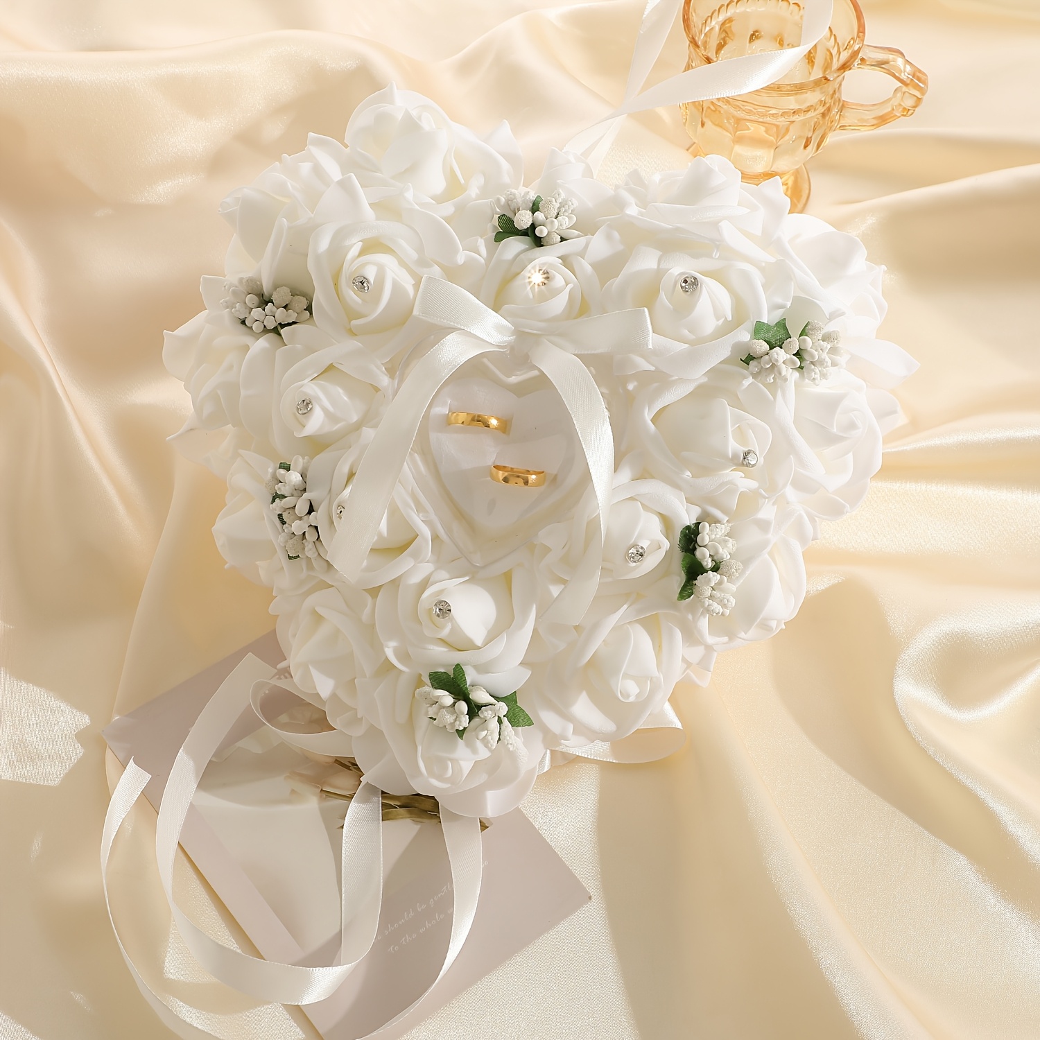 TEMU 1pc Bow Lace Wedding Ring Pillow, Romantic Pearl Decor Bridal Ring Holder Pillow Suitable For Wedding Ceremony Party, Not Including Rings For Halloween,christmas Event & Party Supplies