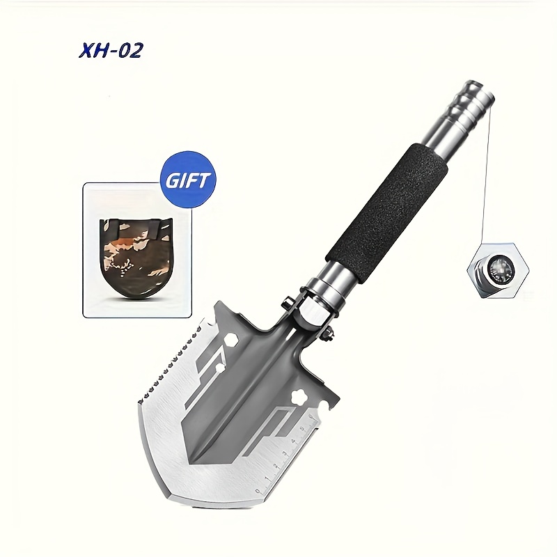 Product information for TEMU 1pc Compact Folding Shovel With Saw, Pick - Stainless Steel, Portable & Durable Survival Tool For Outdoor Camping, Hiking, Garden Work