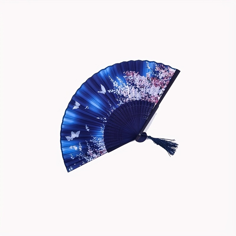 Product information for TEMU 1pc Elegant Black Pvc Folding Handheld Fan, Uncharged Manual Operation, No Battery Required, Classic Ancient Style For Men And Women