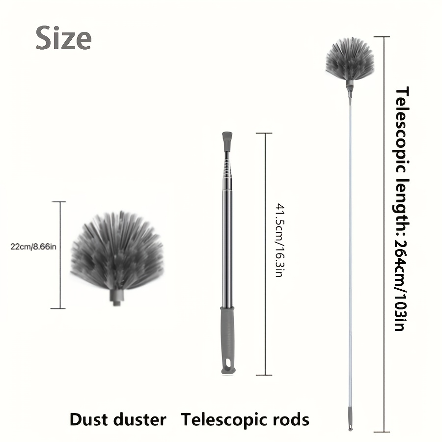 Product information for TEMU 1pc Extendable Duster With Feather, 1.4m Telescopic Pole, Electrostatic Dusting Brush For Living Room Ceiling And Roof Cleaning, No Battery Required