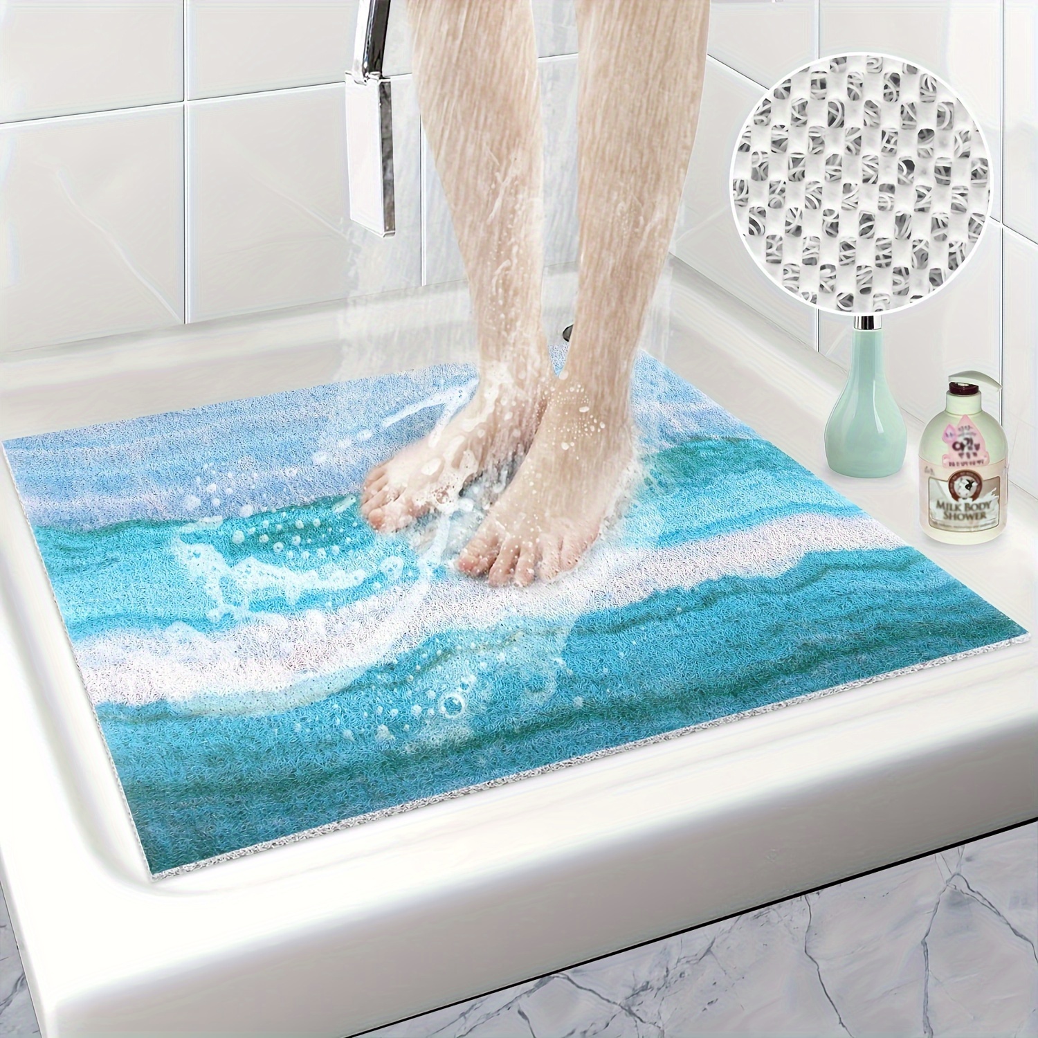 TEMU 1pc Fan-shaped Non-slip Mat 54x54cm With Suction Cups, Drainage Holes, Pvc Material, Machine Washable, Suitable For Bathroom, Kitchen, Greenhouse, , Etc, Furniture Decoration