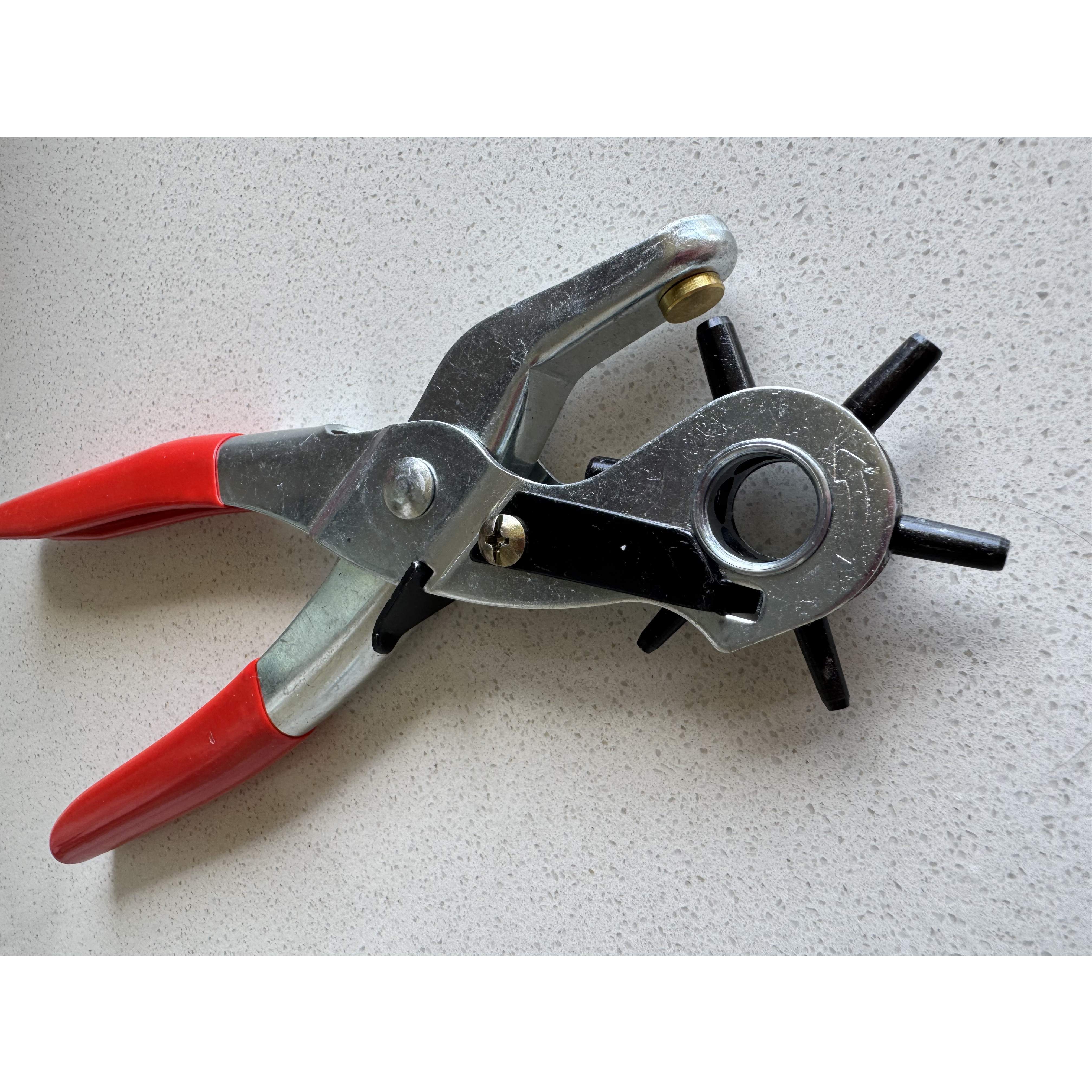 TEMU 1pc Heavy-duty Leather Belt Hole Punch Pliers – Rotary Tool With Red Rubberized Grip For Belts, Sewing Projects & Crafting – Perfect Gift For Diy Enthusiasts, Leather Hole Punch Tool