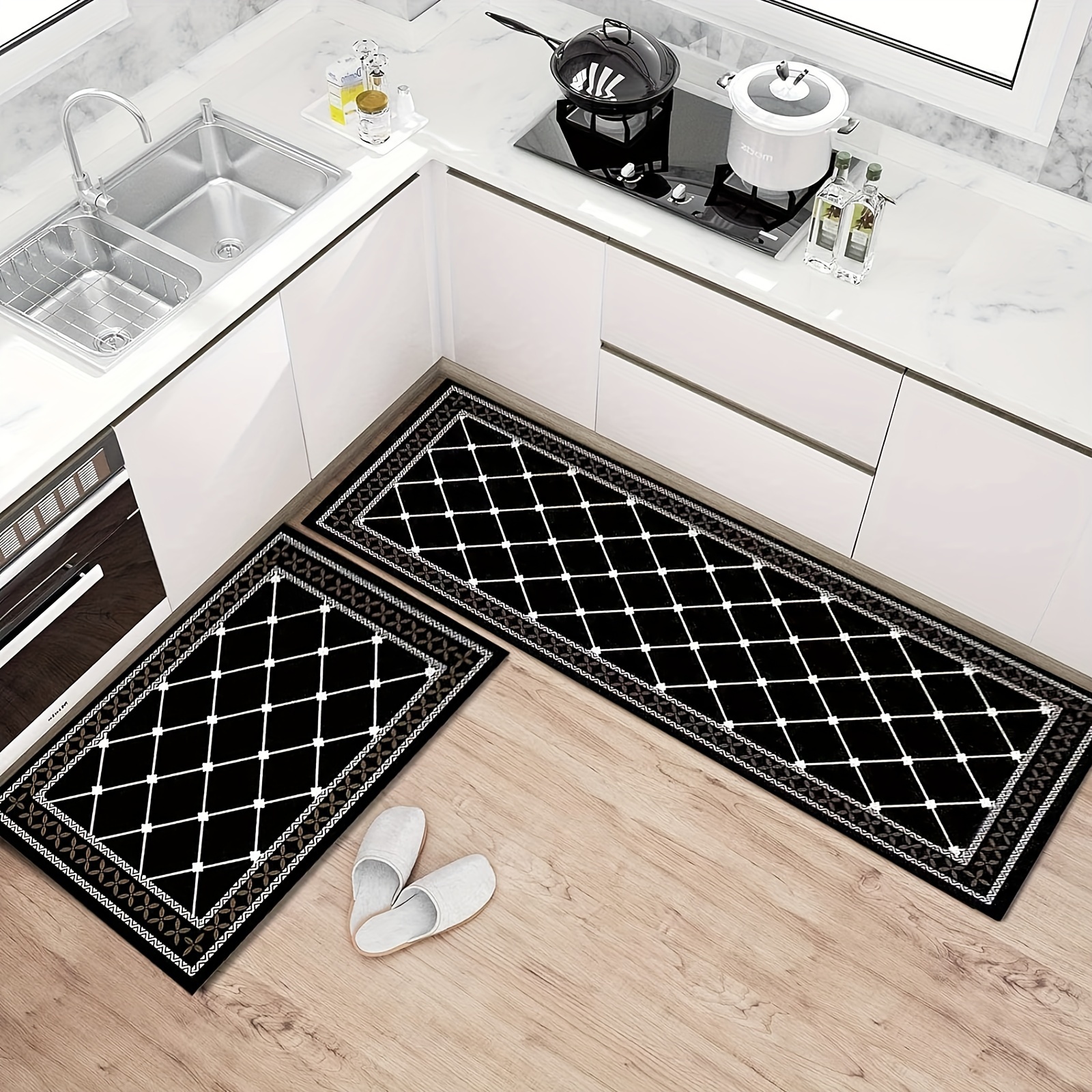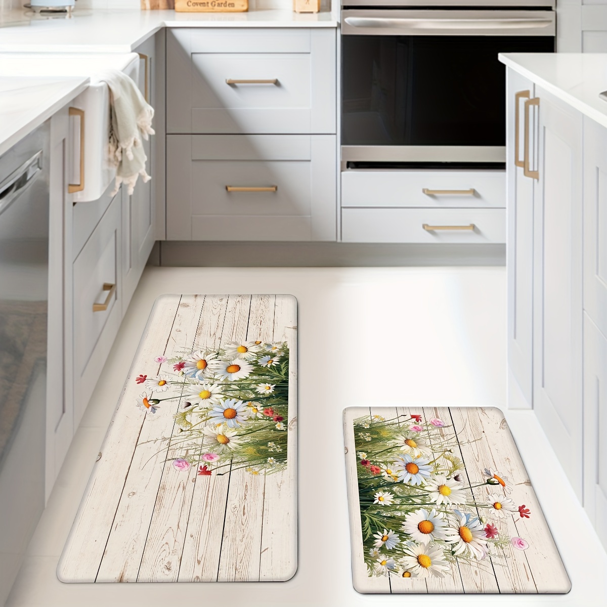 TEMU 1pc Kitchen Mat With Food & Letter Design – Anti-slip, Machine Washable Polyester Floor Mat With Pvc Backing, Cooking & Dining Areas, Kitchen Floor Mat