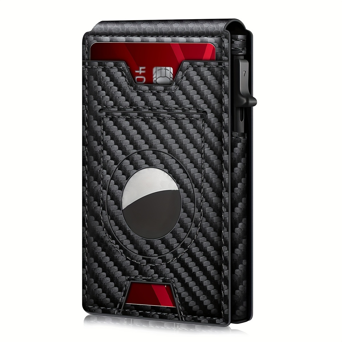 TEMU 1pc Lasvault Slim Aluminum Alloy Wallet For Men, Minimalist Pop-up Card Holder With Rfid Blocking, With Id Window And Strong Magnetic Closure, Pu Leather Trim