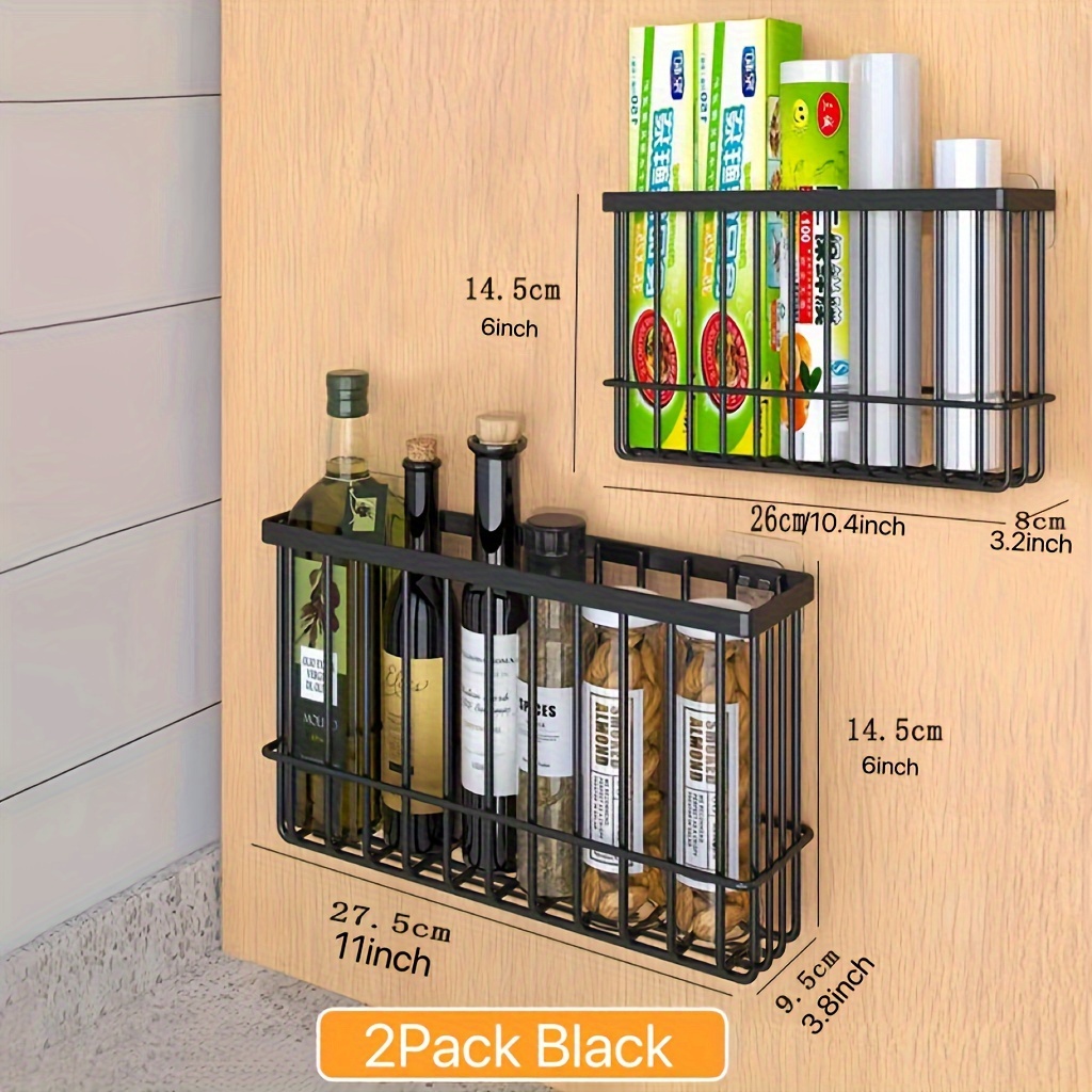 TEMU 1pc Magnetic Side Storage Rack For Refrigerator And Washing Machine, No Drilling Installation, Wall-mounted Spice Storage Shelf With And Painted Finish, Refrigerator Organizers And Storage