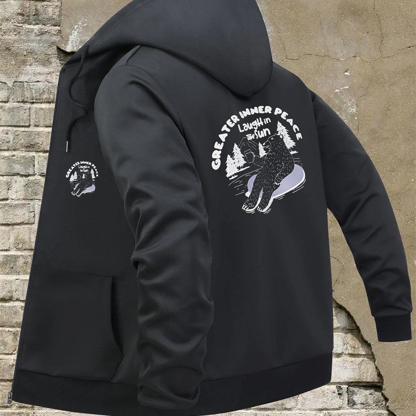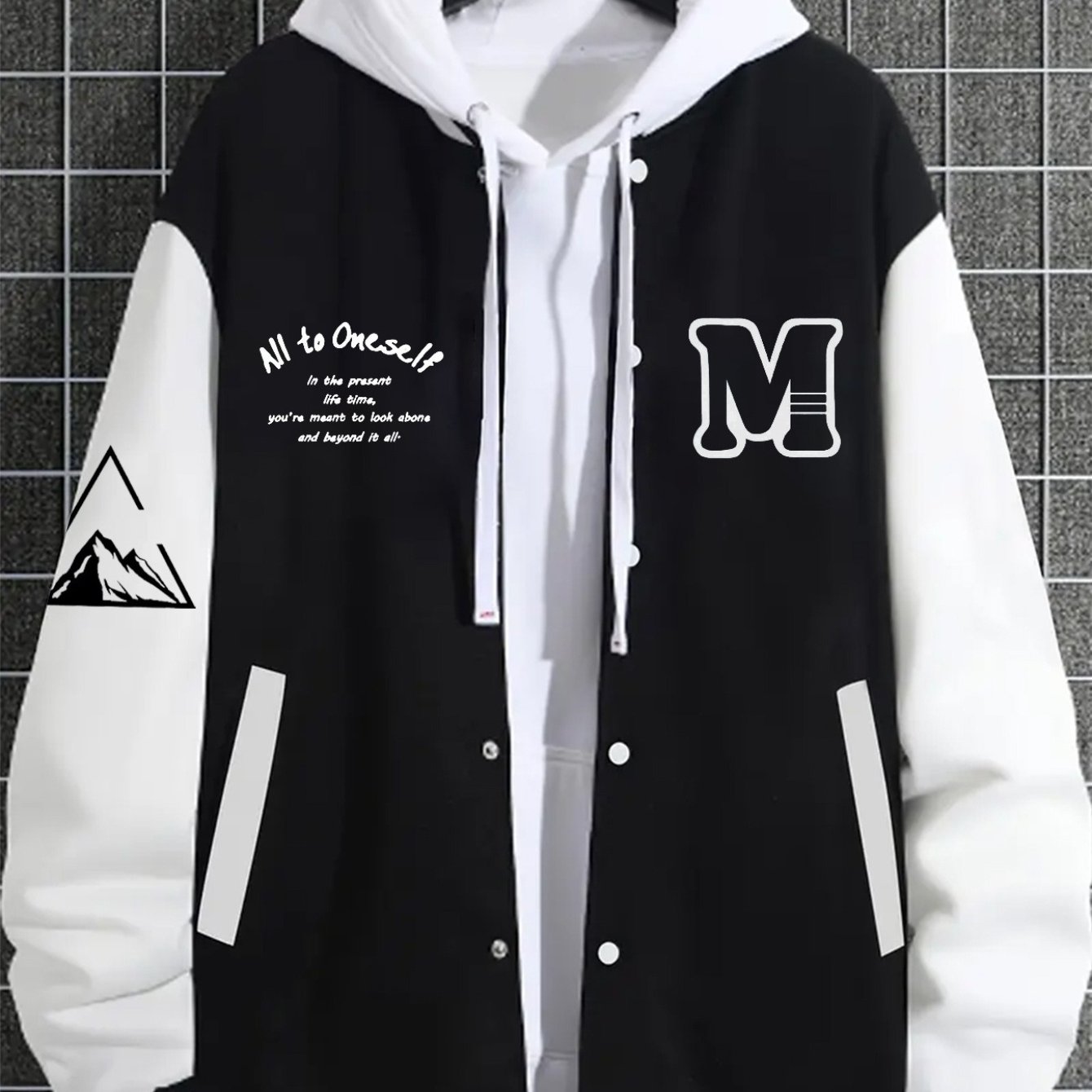 TEMU 1pc Men's Casual Outdoor Geometric-pattern Print Jacket With Stand Collar, Zipper Closure, And Pockets - Knit Fabric Polyester Jacket With Stretch, Regular Fit