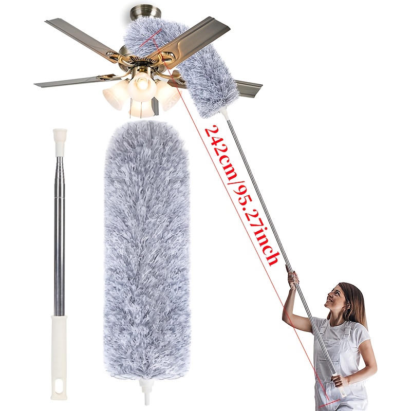 TEMU 1pc Microfiber Duster With Extension Pole - Retractable Head For Ceiling Fans, Furniture, Car - Reusable Washable Dust Removal Brush For Living Room, Bedroom - No Electricity Or Battery Needed