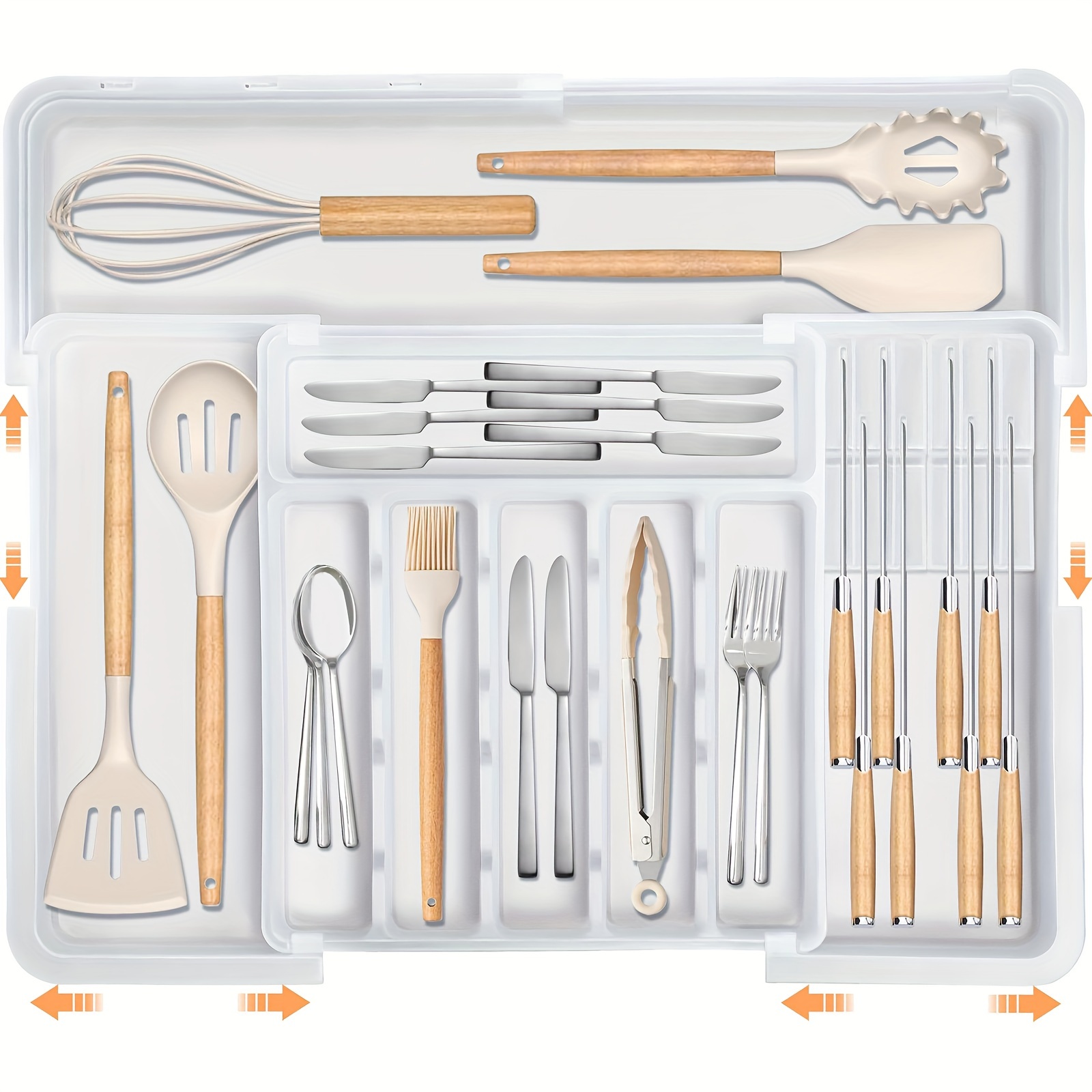 TEMU 1pc Plastic Flatware Organizer With Tension Mount, Portable Cake Fork Storage Container, For Kitchen Utensil Holder