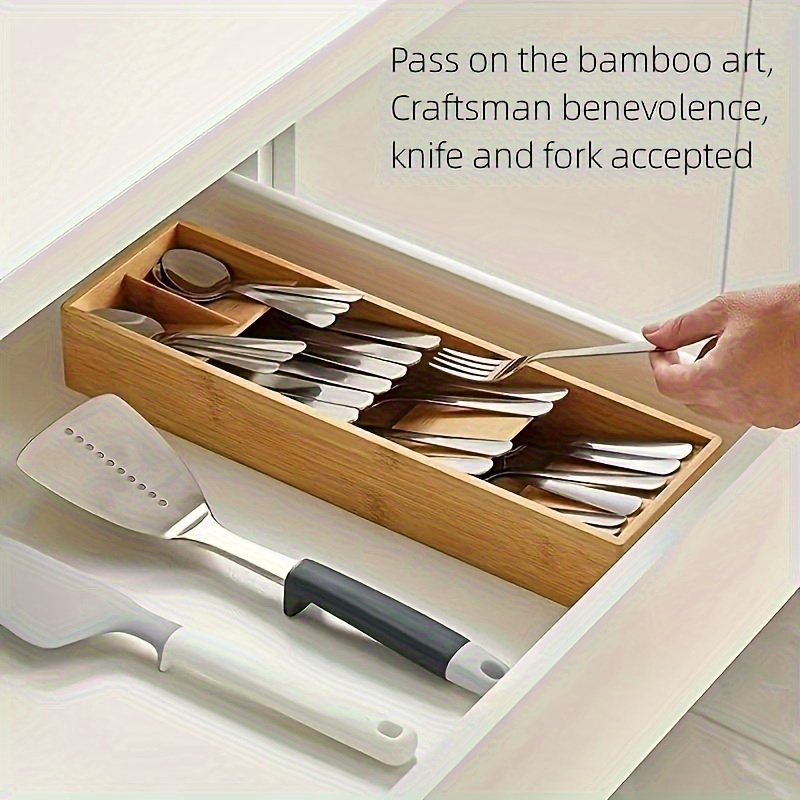 Product information for TEMU 1pc Plastic Flatware Organizer With Tension Mount, Portable Cake Fork Storage Container, For Kitchen Utensil Holder