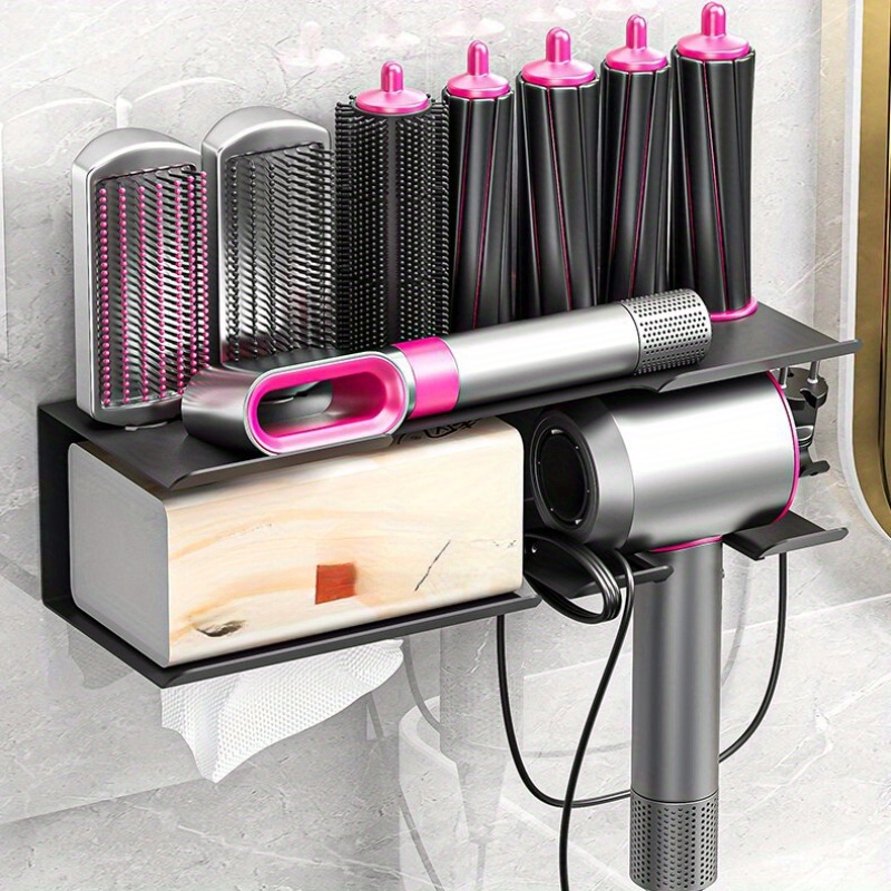 TEMU 1pc Plastic Hair Dryer Holder, Wall Mounted Rack Organizer, Bathroom Accessory, No-punch Required, For Hair Blower, Home Kitchen Bathroom Supplies