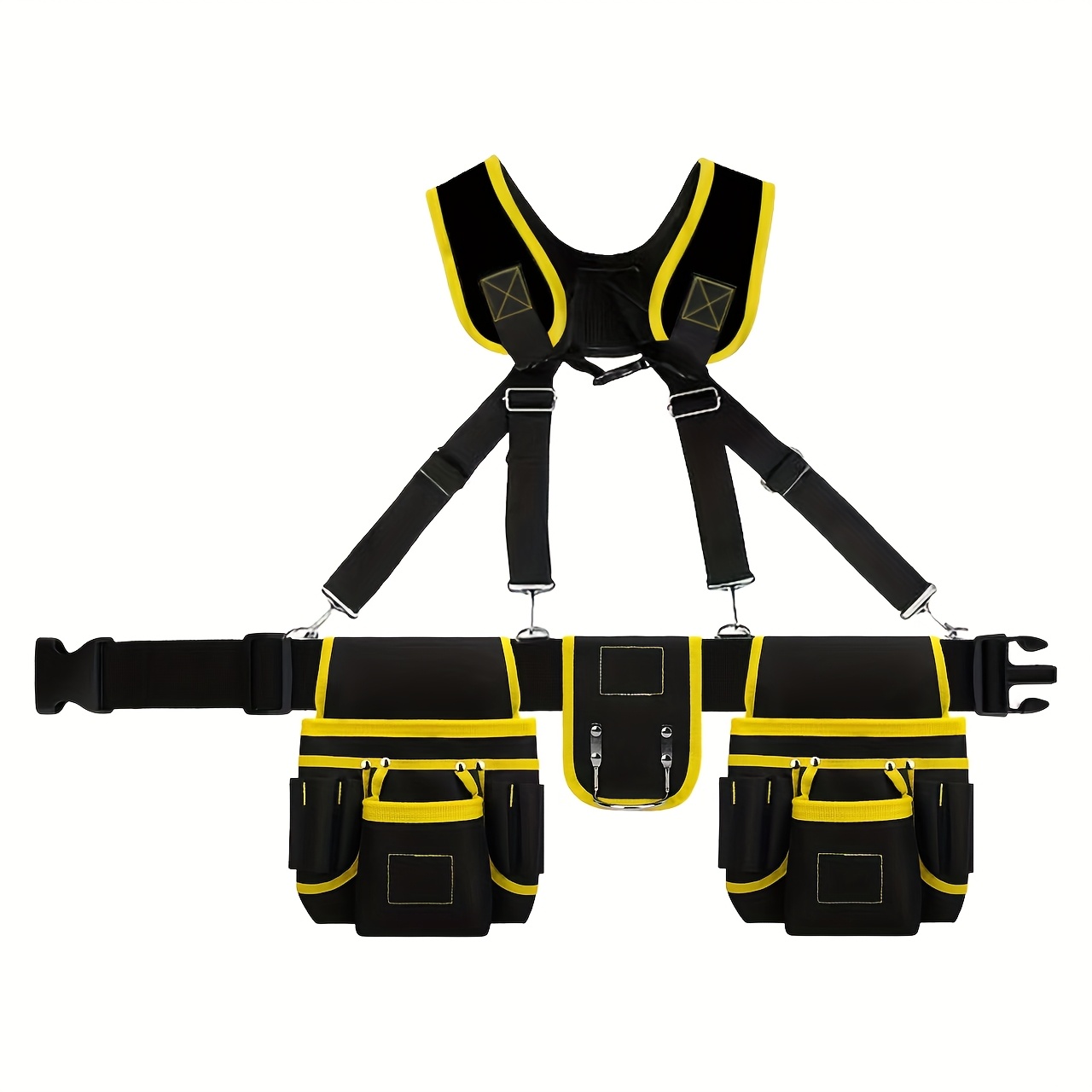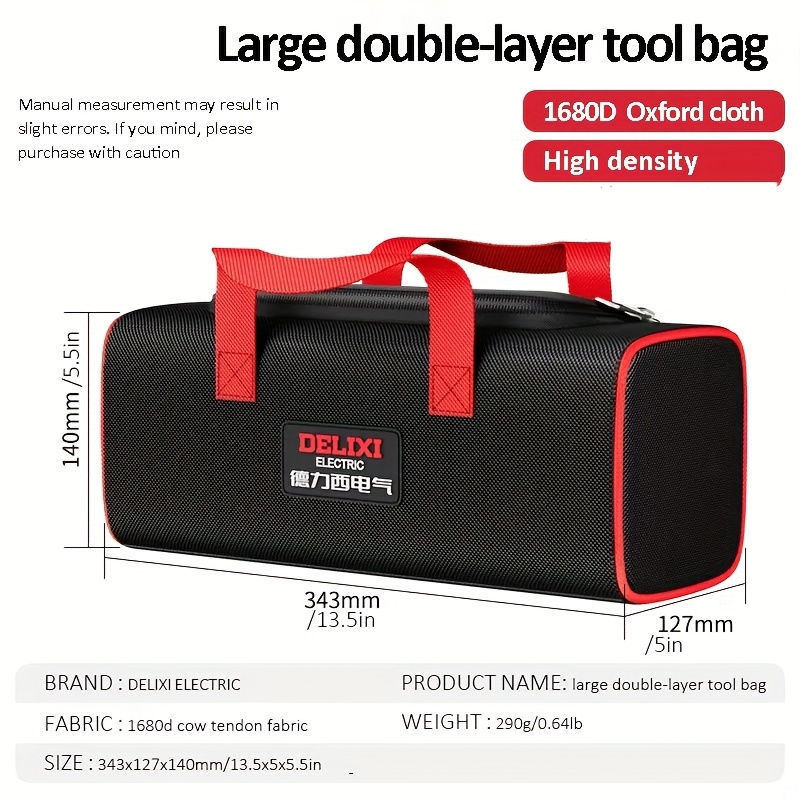 Product information for TEMU 1pc Red Durable Oxford Tool Waist Bag Waterproof Adjustable Shoulder Strap Multiple Pockets For Electrician Diy Projects Electrician Tool Kit