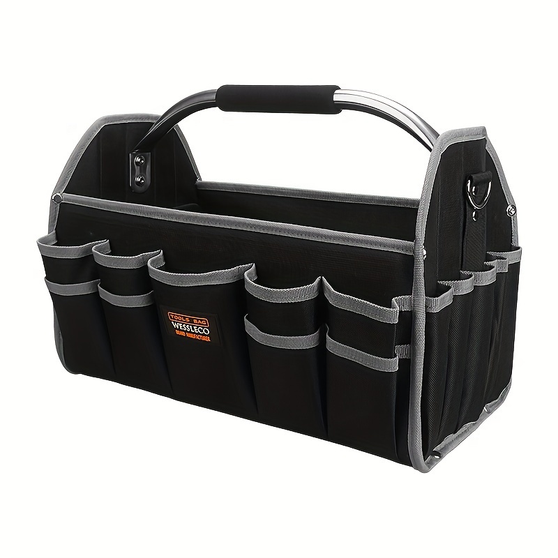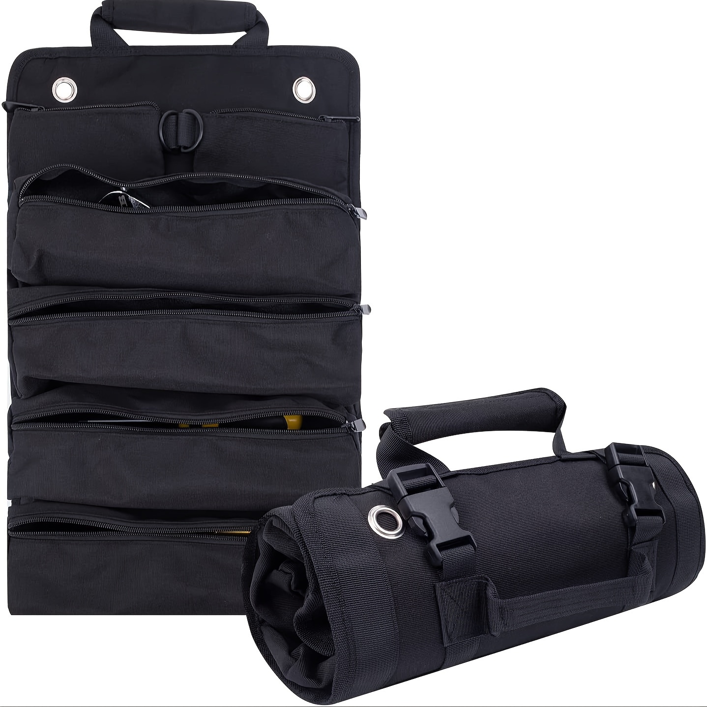 TEMU 1pc Red Durable Oxford Tool Waist Bag Waterproof Adjustable Shoulder Strap Multiple Pockets For Electrician Diy Projects Electrician Tool Kit