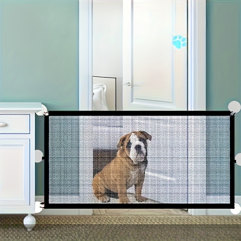 TEMU 1pc Retractable Black Pvc Pet Gate - No Drill Safety Fence For Indoor Stairs, Dog Barrier, Cat Enclosure With Automatic Closing Feature, Cat Gate For