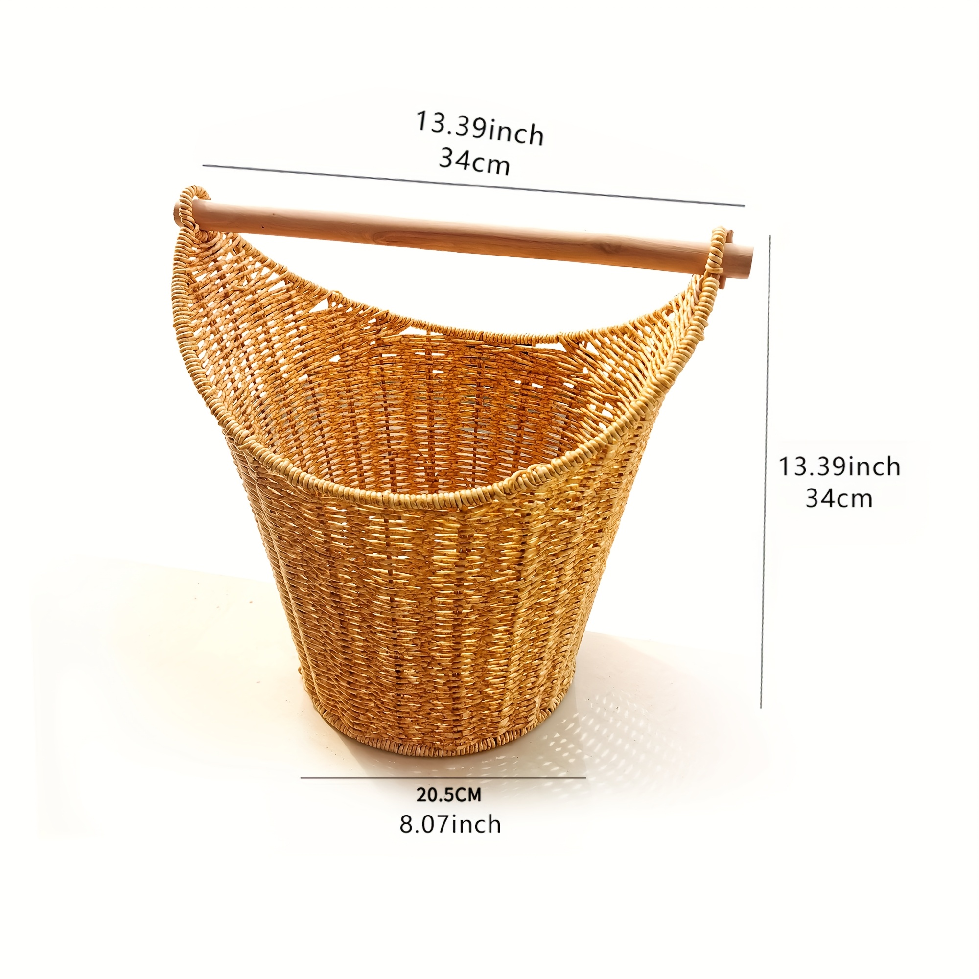 Product information for TEMU 1pc Rustic Rattan Storage Basket - Multipurpose Plastic Woven Organizer For Office, Study, Home Desktop - Drawer Basket For Books, Documents, Cabinet Sorting, Shelf Baskets
