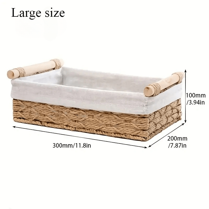 TEMU 1pc Rustic Rattan Storage Basket - Multipurpose Plastic Woven Organizer For Office, Study, Home Desktop - Drawer Basket For Books, Documents, Cabinet Sorting, Shelf Baskets