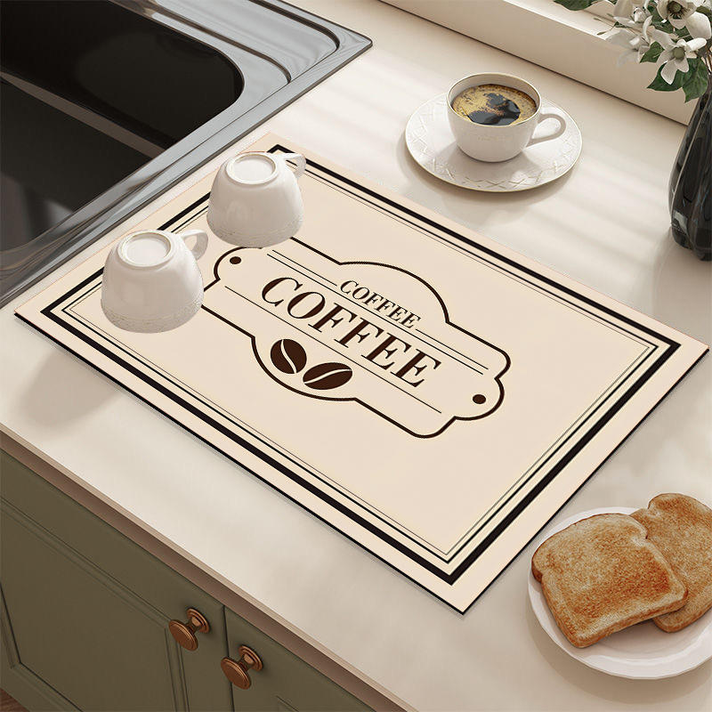 TEMU 1pc Simple Printed Kitchen Drain Mat, Tabletop Mat For Dining And Study Desk. Coaster, Heat Insulation Pad, Countertop Decorative Mat