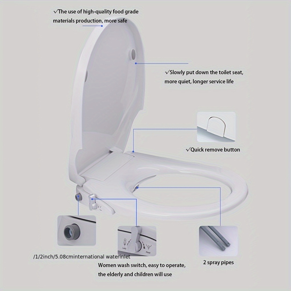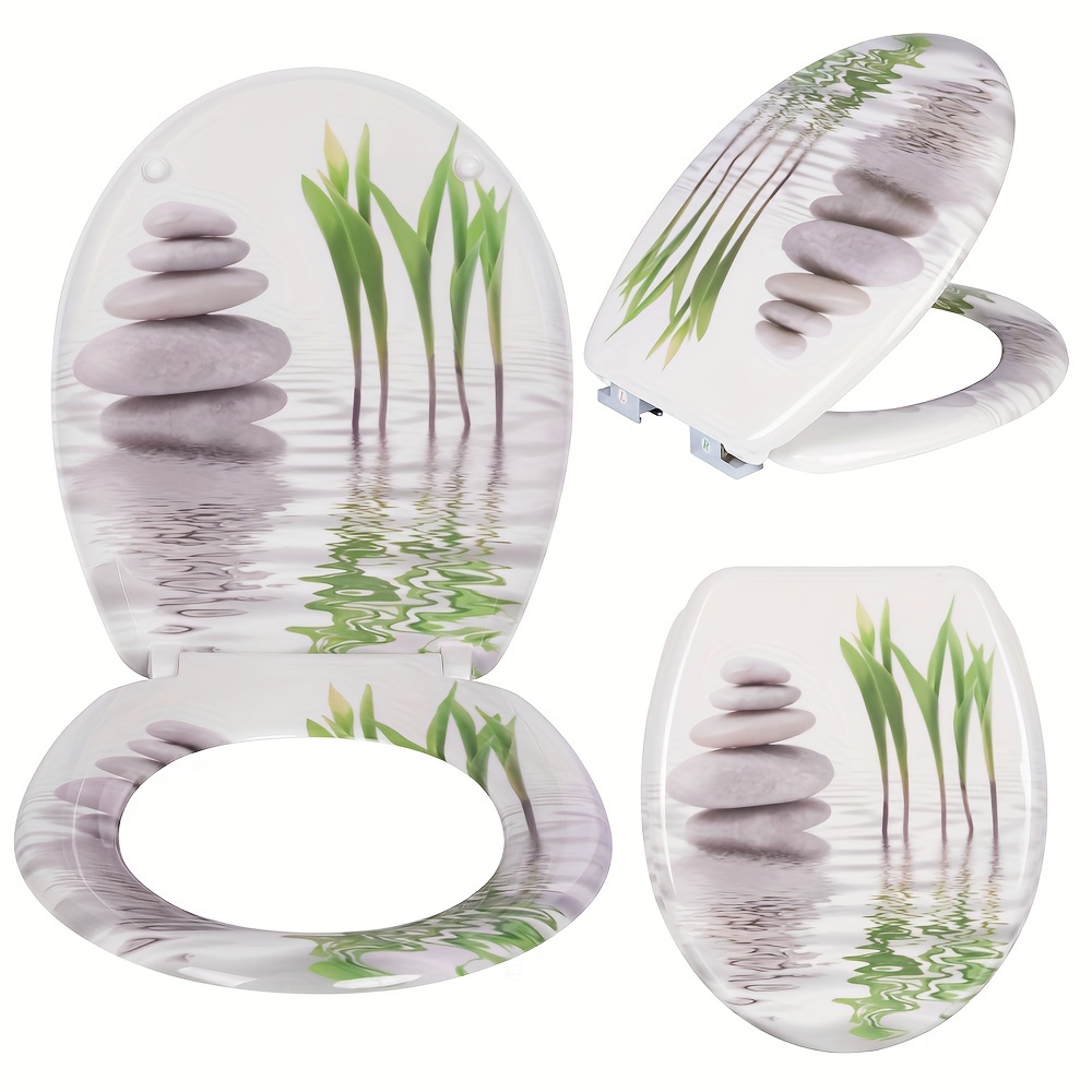 TEMU 1pc Toilet Lid, Toilet Seat With Mechanism, Fast Fix, Easy Removable, Quick Attachment, Square Shape, White