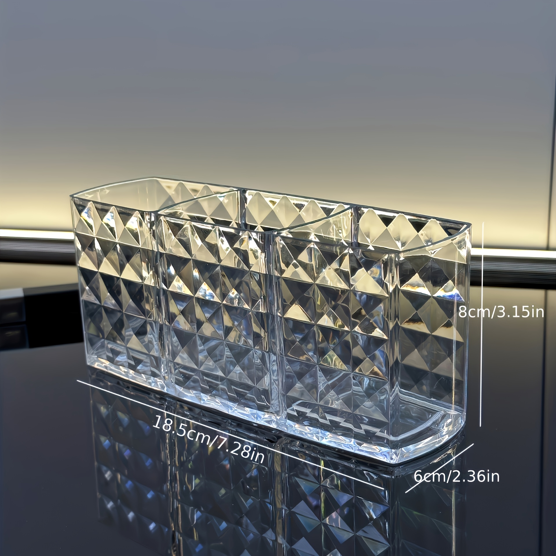Product information for TEMU 1pc Transparent Cosmetic Storage Box Movable Desktop Organizer Dustproof Large Capacity Makeup Container Jewelry Lipstick Box