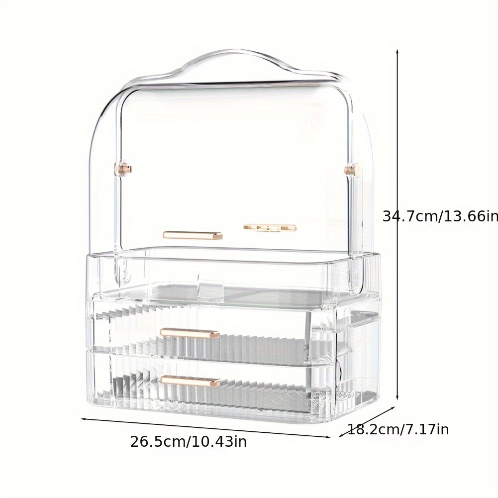 TEMU 1pc Transparent Cosmetic Storage Box Movable Desktop Organizer Dustproof Large Capacity Makeup Container Jewelry Lipstick Box