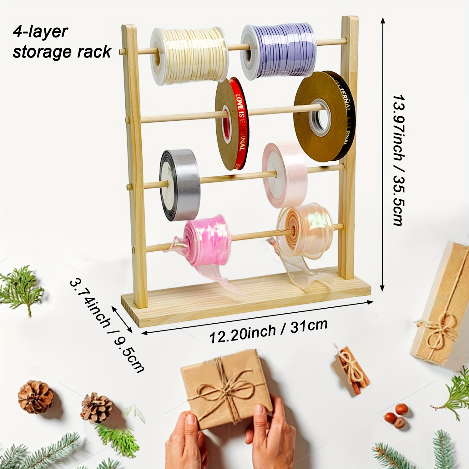 TEMU 1pc Wooden Ribbon Organizer Rack - Multipurpose Storage For Sewing, Crafting, Cables, Garlands, Crochet Threads, Floral Arrangements, And Gift Wrapping - Bobbin Holder Bracket, Ribbon Storage