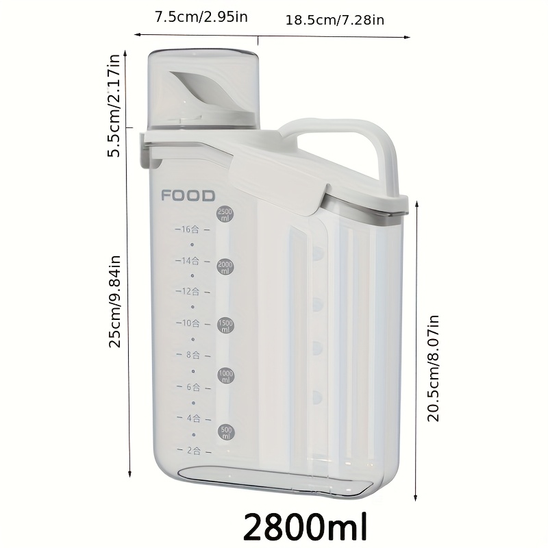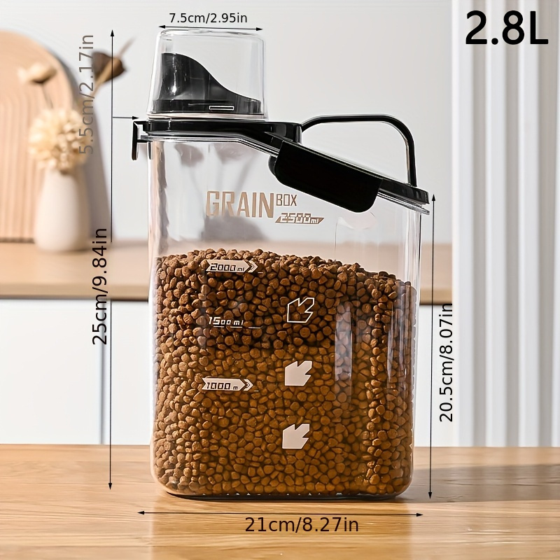 TEMU 2 Capacity Options : 1 /2800ml Airtight Pet Food Storage Container - Moisture-proof, Transparent, With Measuring Cup And Handle - Ideal For Organizing Dry Food, Made Of Durable Pp Material